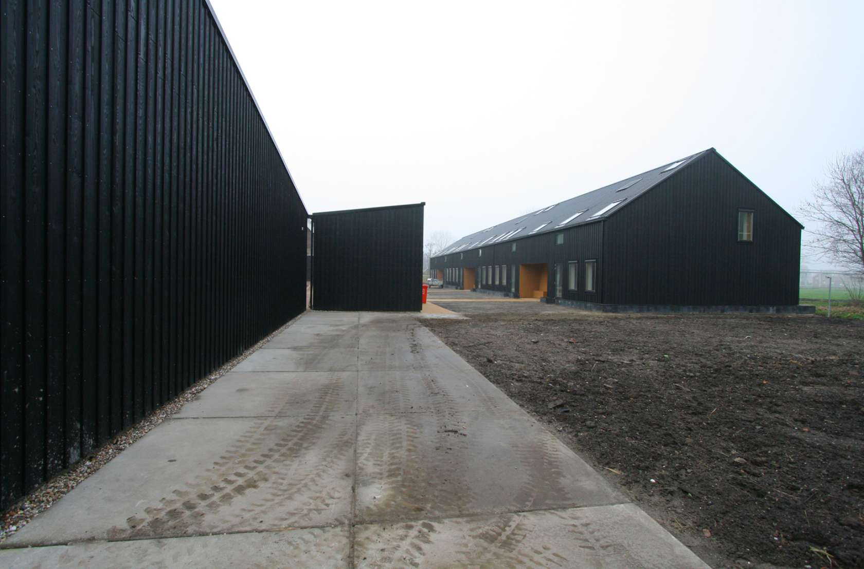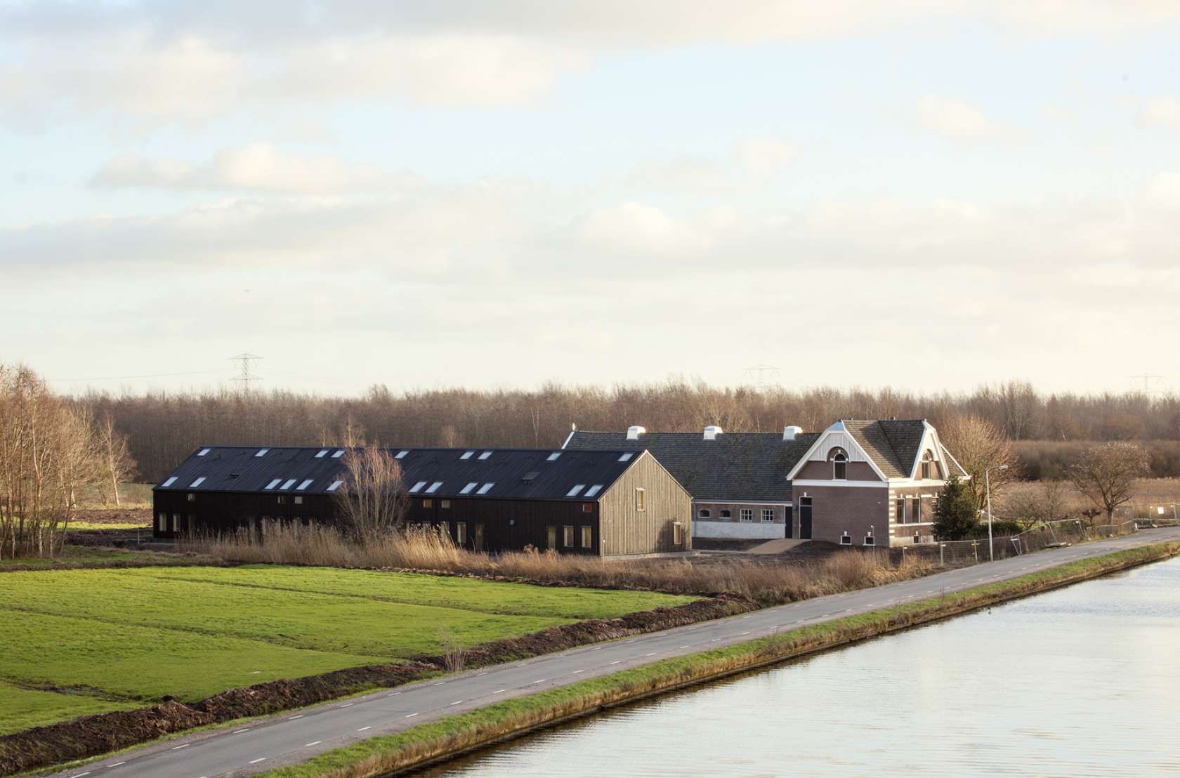 Built for psychologically challenged inhabitants, the Landlust Care Farm includes three new buildings that house residents, a workspace for the nursery, and a porter’s house. The modest yet powerful black façades serve as a new interpretation of the existing buildings and regional farm typology.