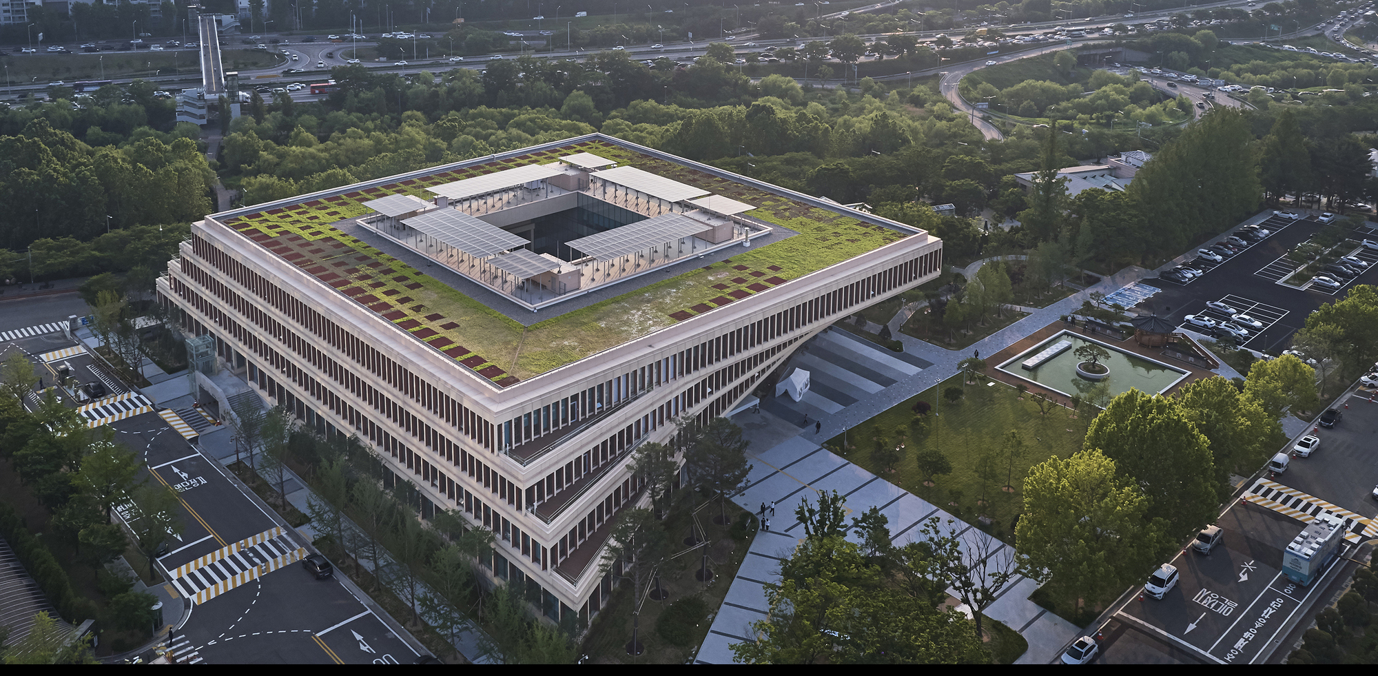 The National Assembly Communication Building at the Republic of Korea Complex embodies the ideals of flexibility and openness. It integrates seamlessly with the existing monumental masterplan while catering to daily activities. The four-story structure is designed to blend into its surroundings, respecting the existing tree line and maintaining a height of 30 to 40 feet. The building’s layout is organized into horizontal zones to accommodate diverse users, ensuring privacy and efficiency.