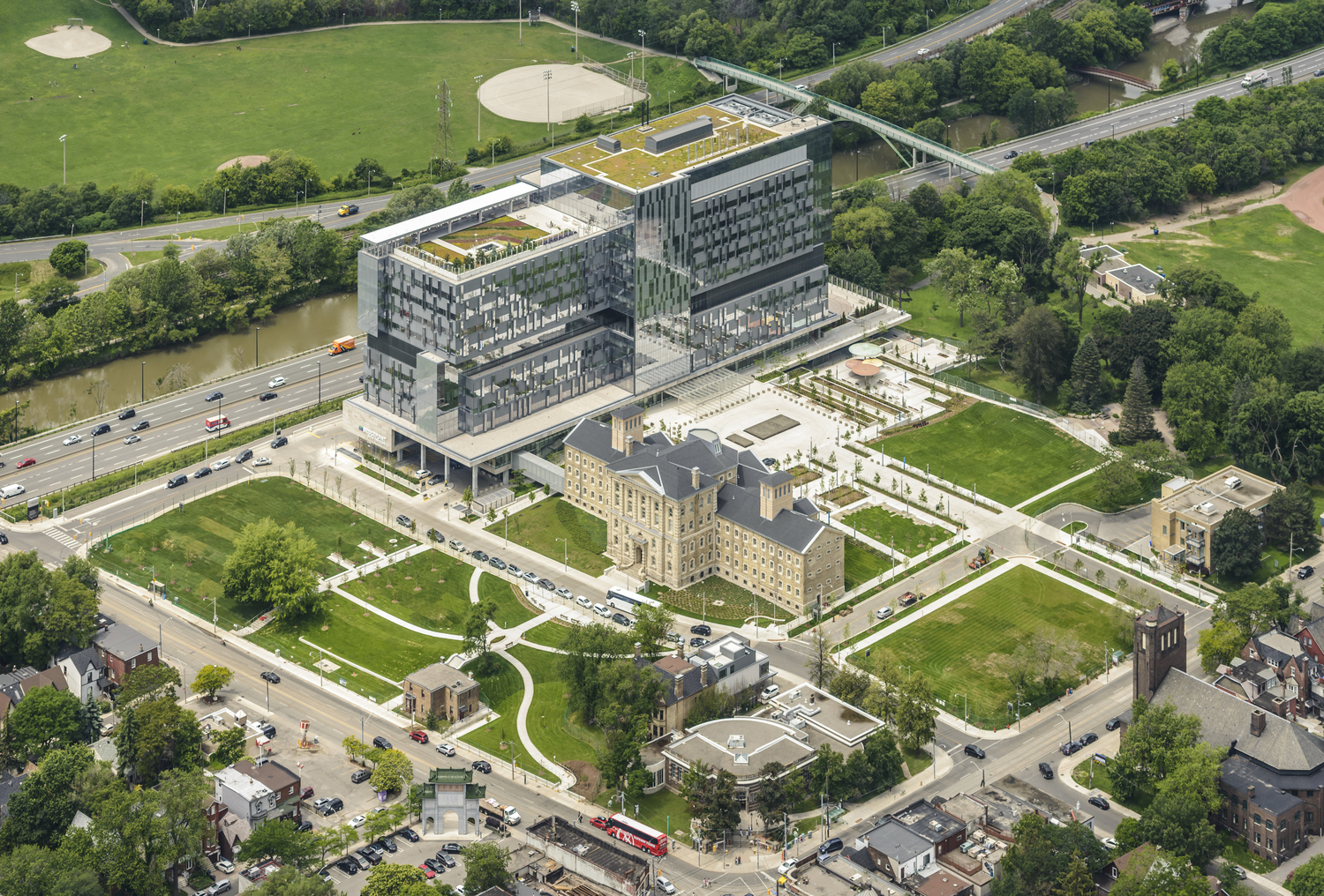 Patrons walk through the pages of history, transitioning from new to historic spaces. A thin atrium stretches the building’s length, flooding all levels with light, and 100 historic images in the atrium’s glass handrails engage in storytelling. Public spaces like galleries and a museum enliven streetscape storefronts, while the great research hall occupies the second floor of the 1914 building. Suspended bridges connect new and old, symbolizing the connection between today and yesterday.
