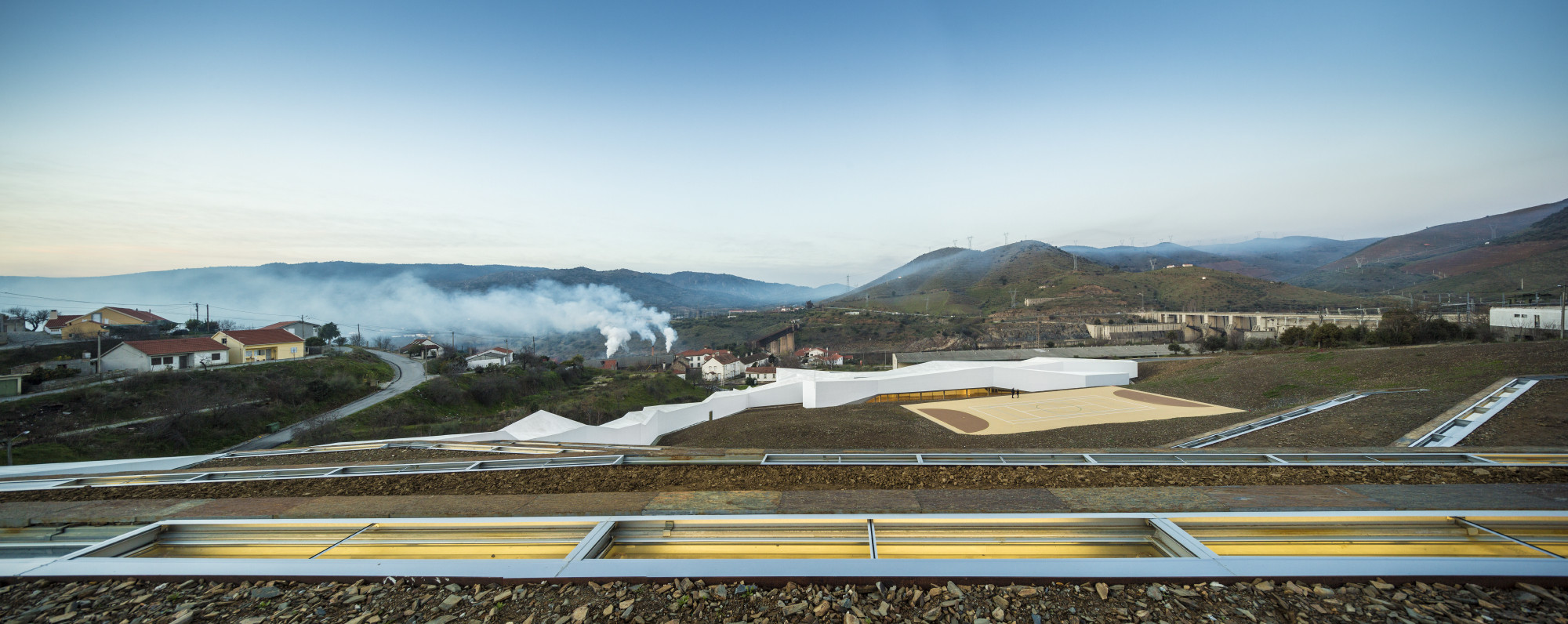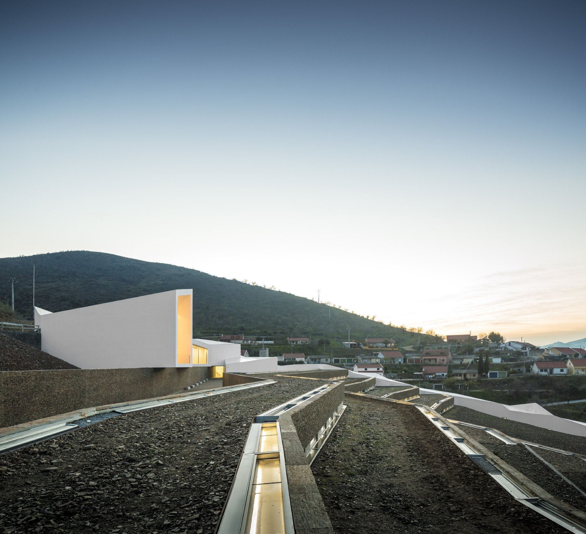 Formed from two ancestral ways of building in the Douro Valley, this Rowing Center takes inspiration from agricultural stepped terraces and large white-walled wineries. Blending the two typologies, the architecture gently slopes and contours across the topography.