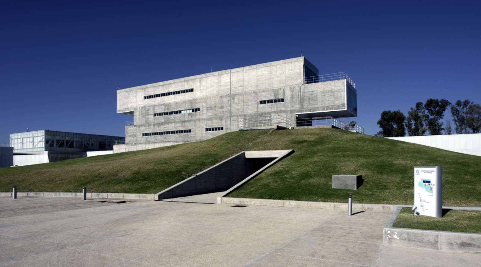 Bold, cantilevered blocks define this extension to the Institute of Agricultural Studies in Mexico’s breadbasket, Bajio, concealing the activities of its researchers behind opaque façades of concrete and glass.