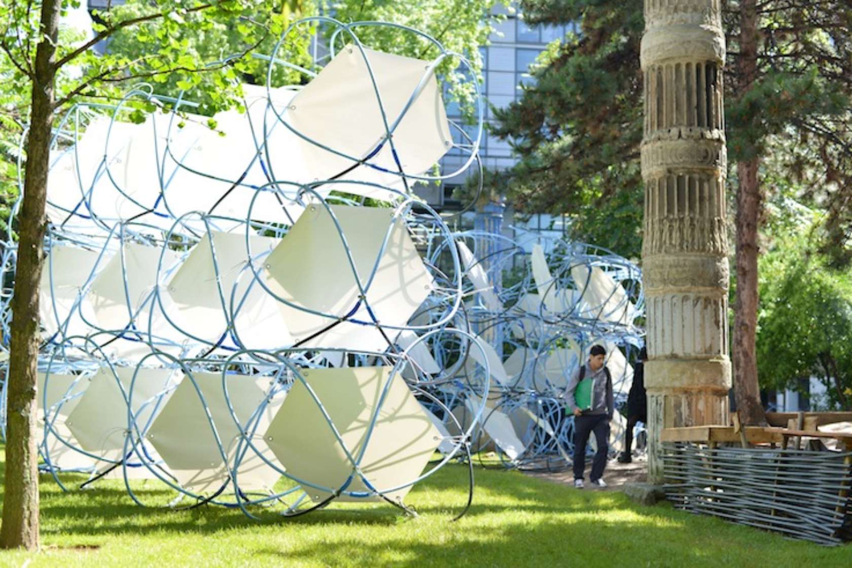 This installation was designed and built by the students of Ecole Spéciale d’Architecture for the ‘Pavillon Spéciale’ program of temporary structures by emerging architects and designers. The structure is composed of 200 modularized ‘cells’ that can be transported as a flat unit, rapidly assembled on location, and easily dismantled and transported to a new location.