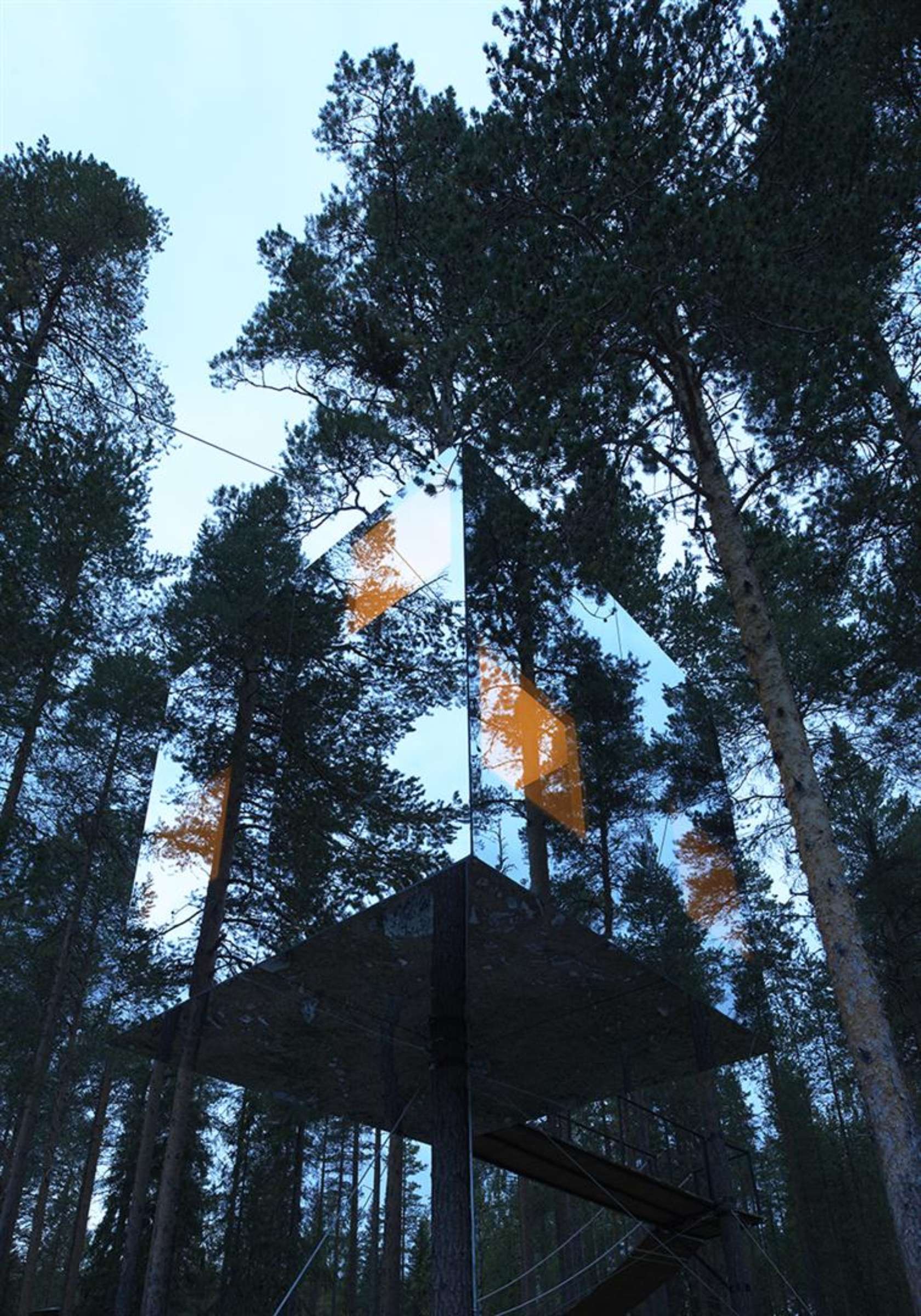 This 4-meter cube is actually an unconventional hotel suspended midway up a tree trunk in Harads, Sweden. Just big enough for two people, the tiny structure gives off an essence of pure seclusion and stillness, the windows providing a 360° view of the outside world. The mirrored glass exterior is made of lightweight aluminum that reflects the sky and trees around the hotel. But don’t worry, birds won’t unknowingly crash into the invisible building, thanks to the transparent ultraviolet coating on the structure’s skin.