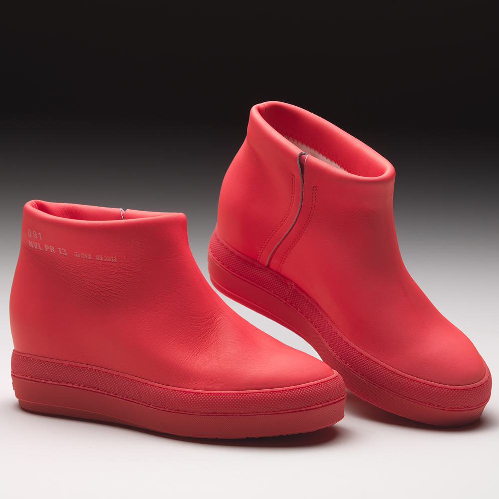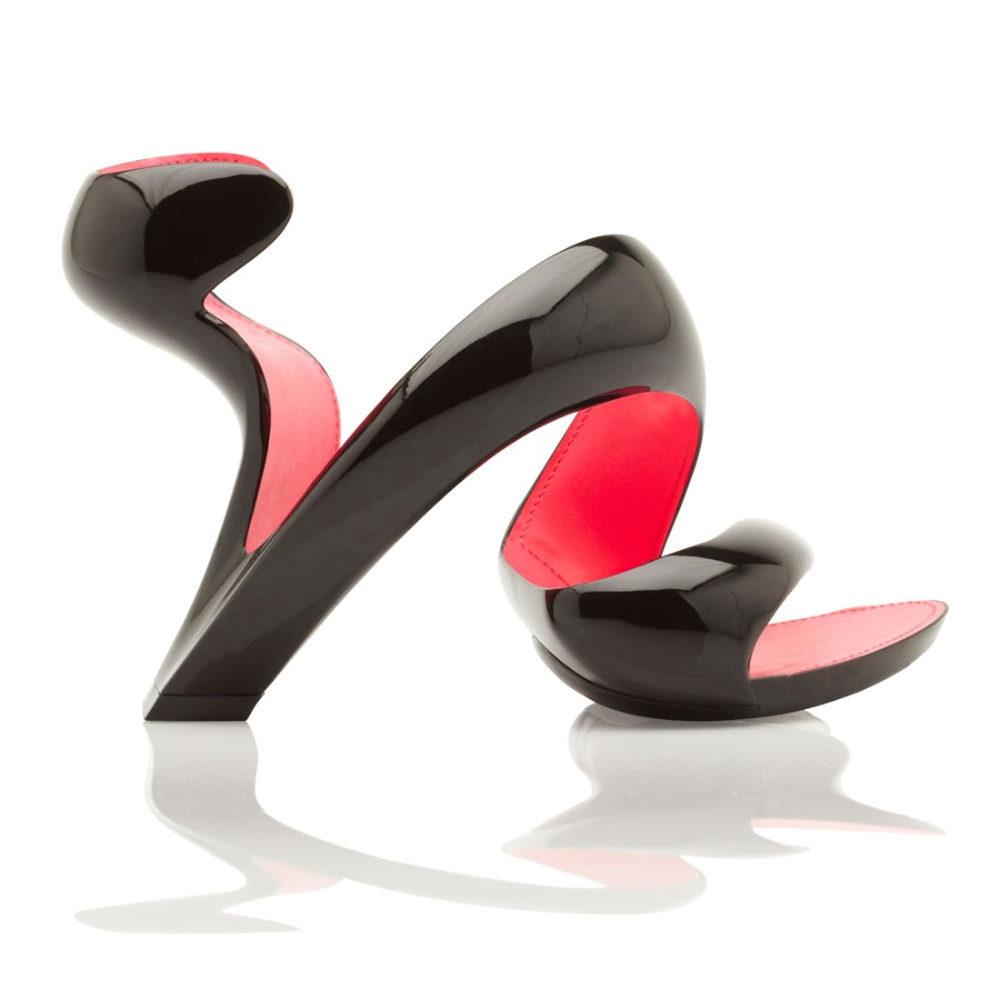 Like Rem’s Möbius shoe, the high heel designed by architect Julian Hake is comprised of a single strip of structural material — but the Mojito is markedly more flamboyant, spiraling from ankle to toe with no footplate required. The design was revised from its original form to address practical issues, and has perhaps lost some of its purity in the process, but it remains a brave exhibition of reductive design nonetheless.