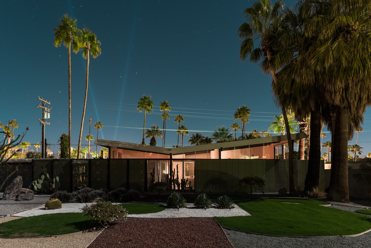 Blachford began the project haphazardly in 2013 during a vacation with his girlfriend. They had simply run out of time during the day to shoot. As it happened to be a full moon, they decided to explore the suburbs at night, initially using the Palm Springs Modern Committee’s (PS-MODCOM’s) official smartphone app as their guide. Blachford has since returned to Palm Springs twice, refining his technique each time.