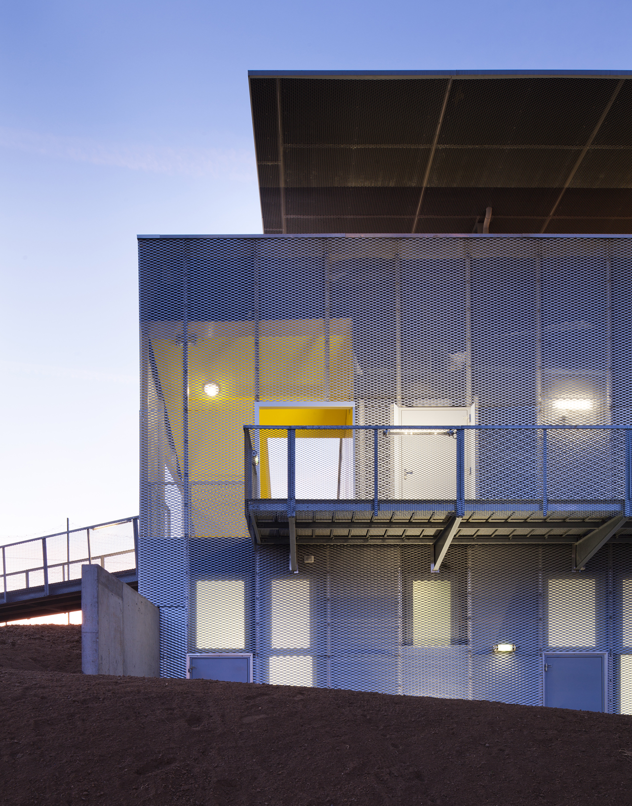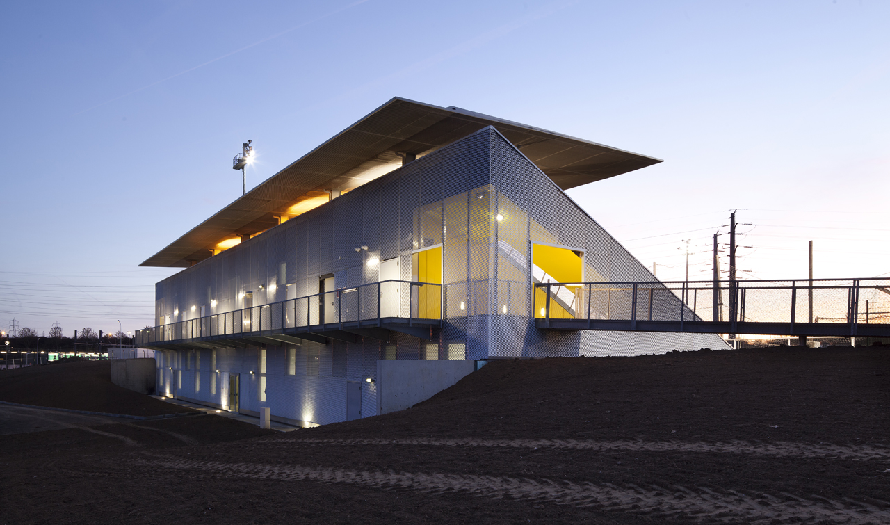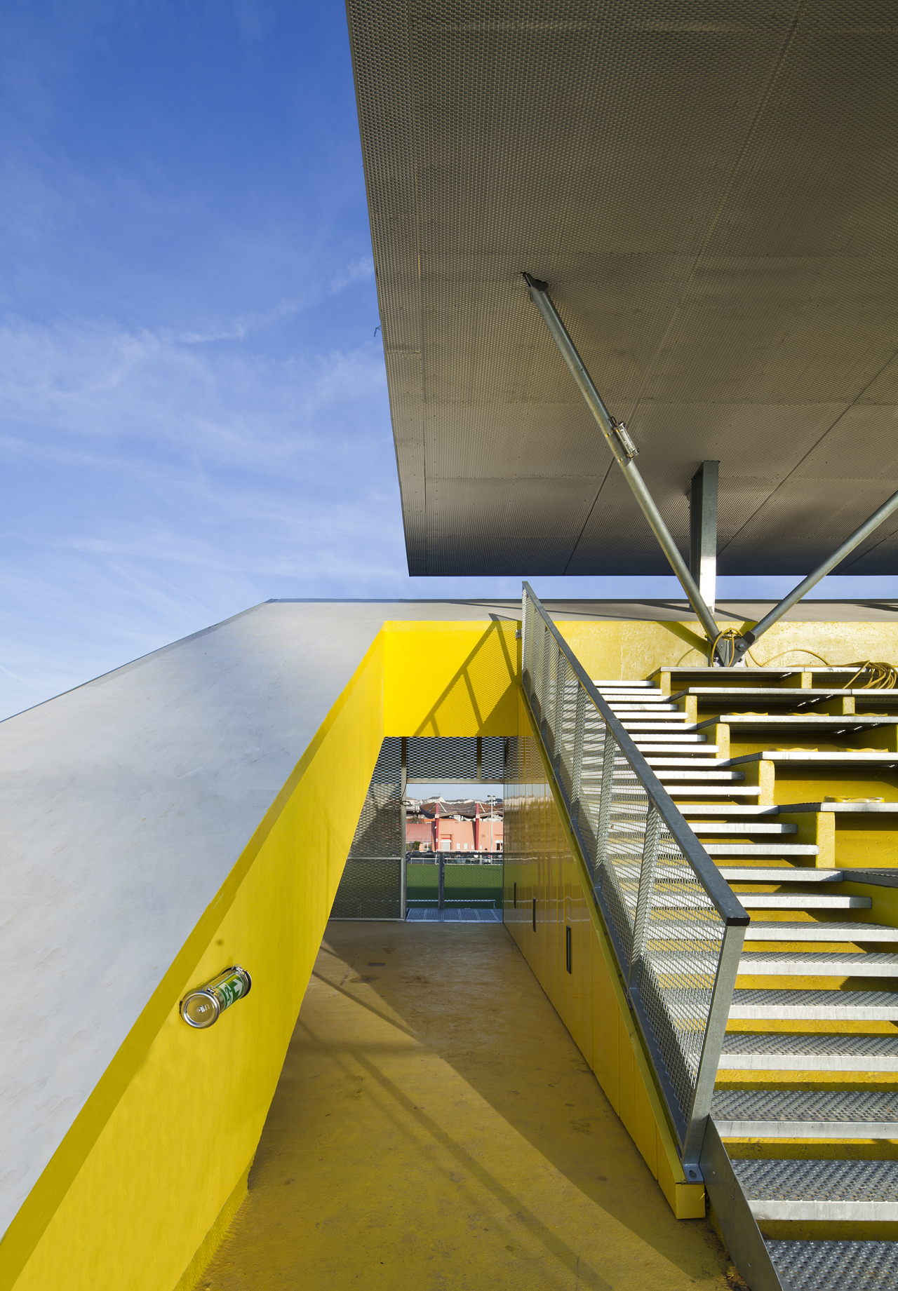 The 300-seat Dominique Duvauchelle Stadium proves that a modesty and good design are not mutually exclusive. The yellow stands are wrapped in a metal mesh, allowing for semi-opaque color-block reveals.