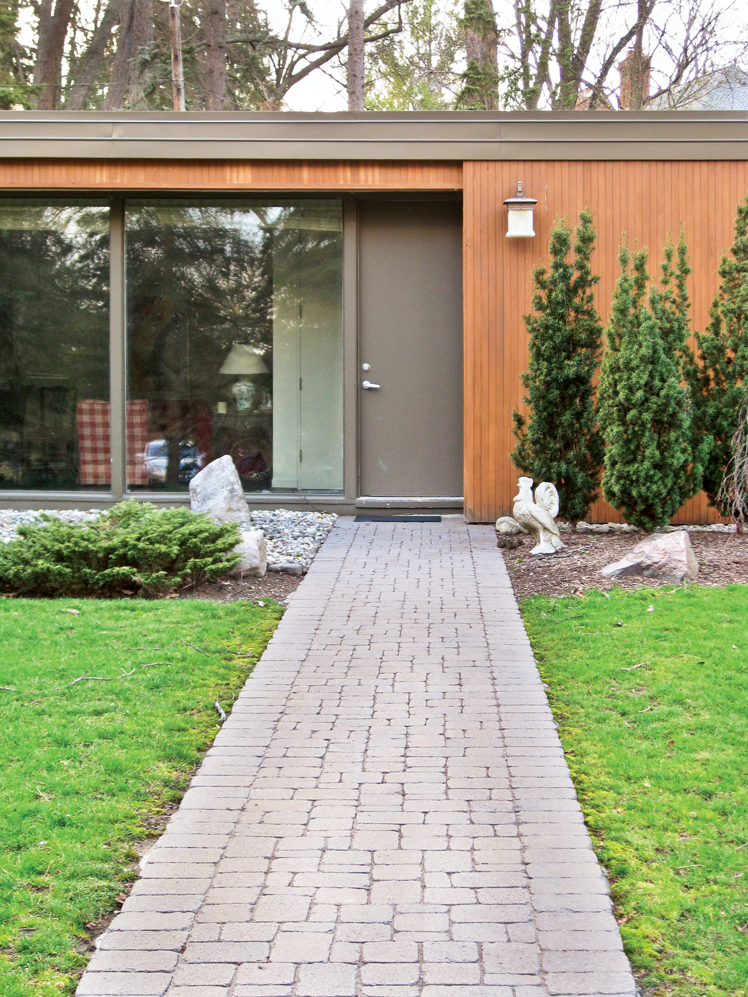 Eliel took great pains to design the entirety of his residence on the Cranbrook Academy of Art campus, meaning that he oversaw the horticultural design in addition to the structure itself. His wife, Loja, made the textiles and Art Deco fireplace. Reading nooks with natural light have prominence in the design, as does a stepped garden, visible from multipane windows along the house’s back wall. Its rectangular plan comprises a series of asymmetrical spaces.