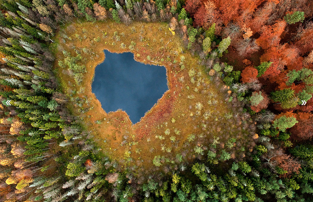 Kowalski found this remote lake in Kashubia, northern Poland, and harnessed its distinctive palette of nature colors to portray the wondrous variety of the local landscape throughout each season. This multichromatic autumnal shot is particularly spectacular, with the reflection of the sky in the water lending the scene a surreal air.