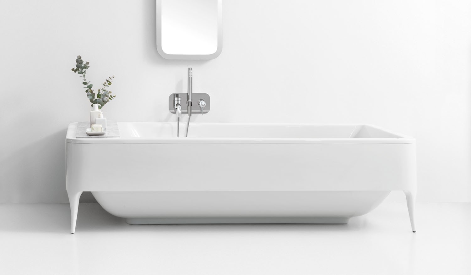 With slim, sexy Art Deco–meets–Scandinavian–style legs, Daffodil looks as if it can actually stand up and walk away. This playful touch is courtesy of Spanish designer Jaime Hayon, who always manages to inject (sometimes subtle) humor into his products. Part of a larger collection of fixtures and furnishings by Hayon, the unit comes in two lengths, the longer of which features integrated containers for holding bath salts, soaps, towels, accessories and more.