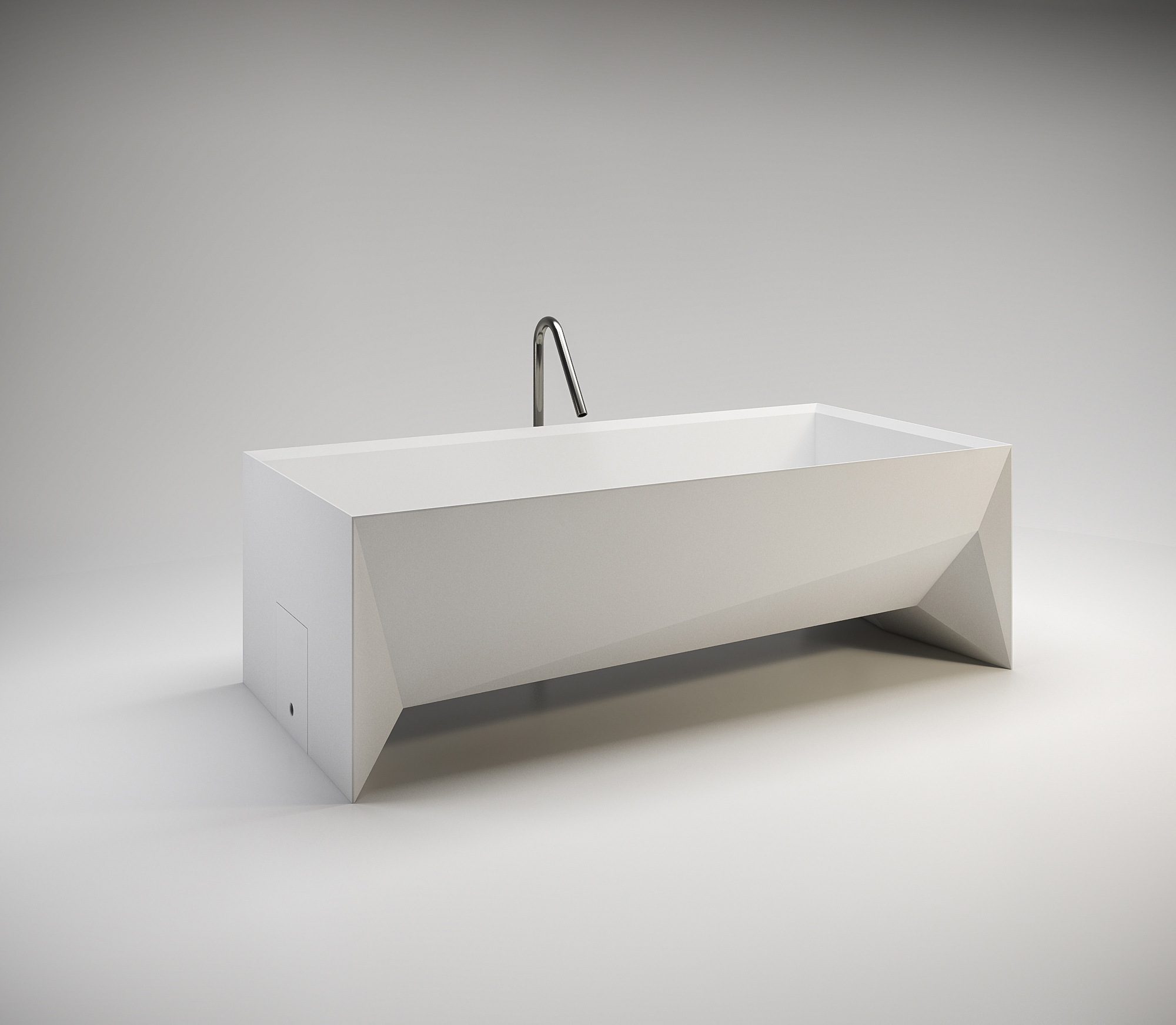 Also inspired by its namesake, the rectangular Origami references the art of folding paper with asymmetrical facets in its face and feet. Measuring 1,900 by 615 by 900 millimeters, it’s made of the proprietary ASTONE and finished in white. Hastings Tile & Bath is the US distributor.