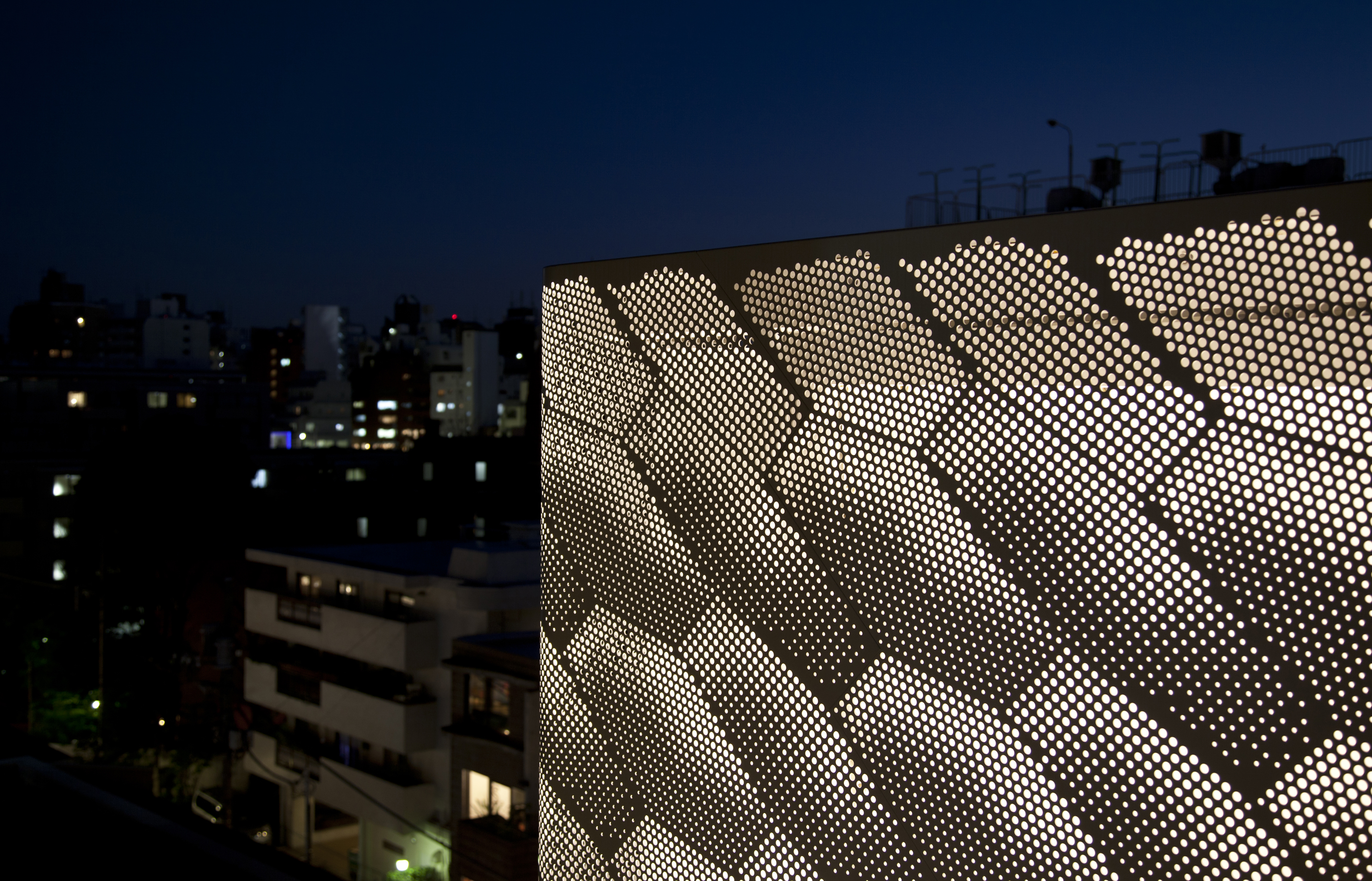 Designed as a flagship building for Marc Jacobs, this project is located in Tokyo’s famous Aoyama shopping district. The design features an elegant kosakubutsu made with perforated aluminum panels and illuminated tensile fabric.