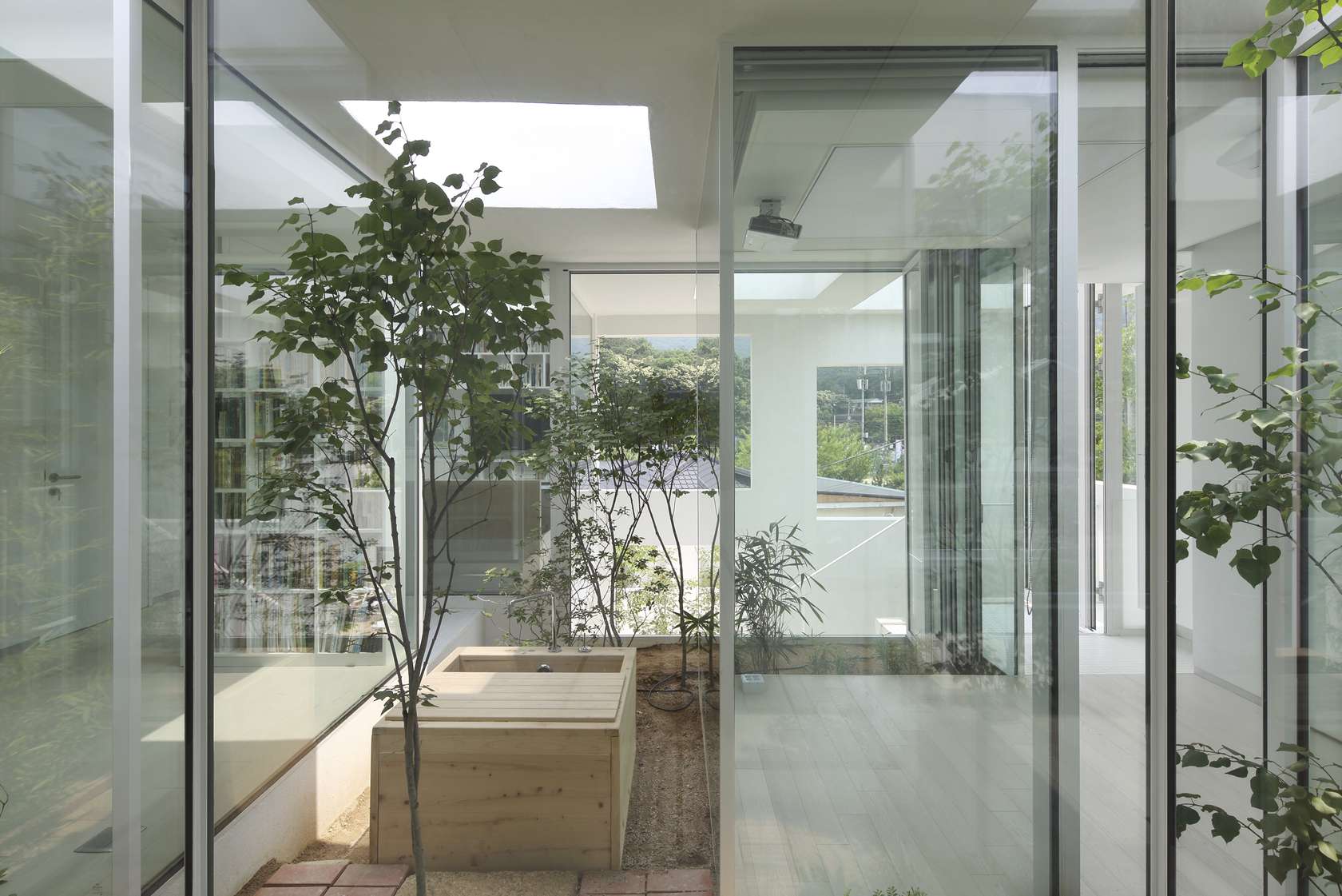 Inspired by Louis Kahn’s 1955 Trenton Bath House, this house began as a geometric plane with a system of nine partitions. The configuration creates a mandala-like shape, ignoring the principles of universal design programs, devising an arrangement can meet the needs of individual residents. Temporary and permanent divisions of space are employed to develop a distinctly personal dwelling. A single unit is made up of three primary components: a furniture courtyard, a variable zone, and an internal courtyard. One of the most fascinating partitions of space is the outside space that intertwines with the inside spaces between glass: in-between places of glass and light filtering through the transparent walls. The wooden bathtub is ambiguously located in the garden.