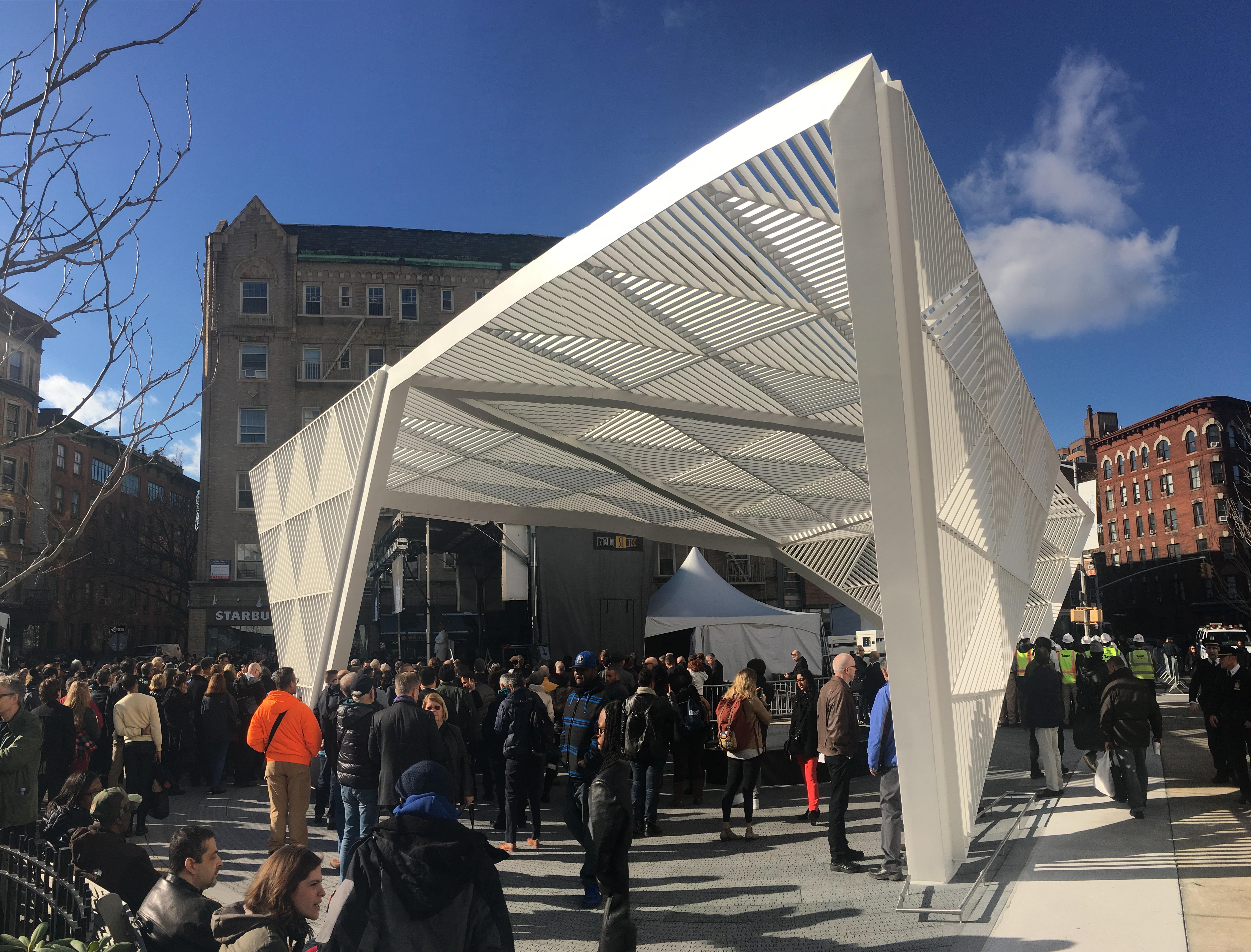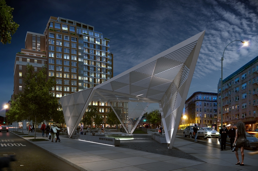 Back in 2012, the winners of the AIDS Memorial Park Design Competition — a competition hosted right here on Architizer — were unveiled, with a collaborative team including Mateo Paiva of Studio a+i, former President of McGraw-Hill Construction Keith Fox and Manhattan Borough President Scott Stringer coming out victorious. Their design, a faceted canopy of gleaming white louvers, has now commenced construction at the intersection of West 12th Street and Greenwich Avenue, and the team recently revealed photographs of the pavilion’s fabrication.