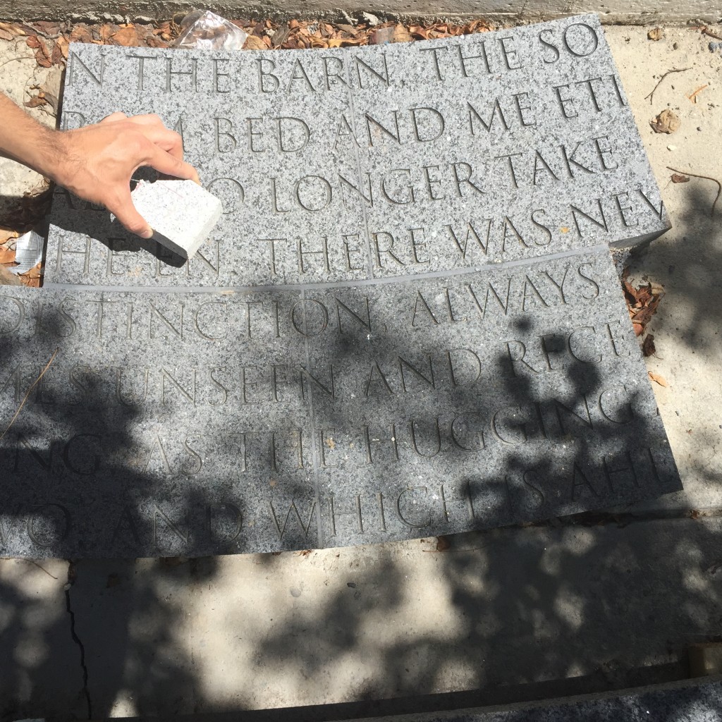 Artist Jenny Holzer’s inscriptions upon the pavilion paving stones