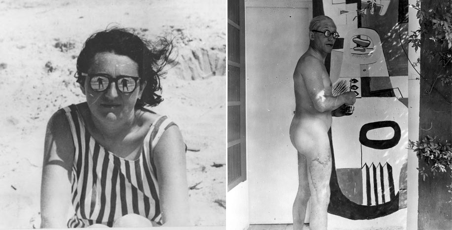 L: Alison Smithson, via BDOnline; R: Le Corbusier at Eileen Gray’s Villa E1027, via the Guardian.