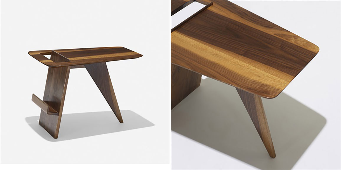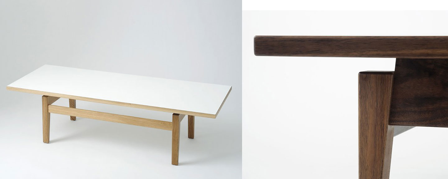 Delightful and a bit quirky, the T539 sports a slot opening in the top for dropping periodicals into a holder (really a lip that’s been cleverly integrated onto the table’s base). Meanwhile, the T390 incorporates the same magazine-holding capability in a low, four-legged coffee table model. Each comes in oak or walnut with an oil finish.