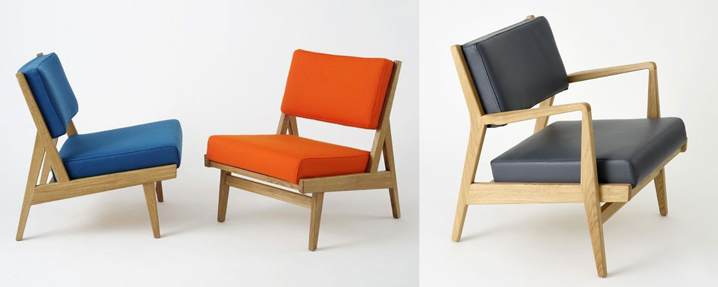 Angles, smoothed corners and almost seamless joinery define these two lounge chairs (430 has arms, 431 doesn’t). Both of these low sitting chairs have wood frames in oak or walnut while the upholstered seat and back can be specified in any Kvadrat fabric or Elmo leather.