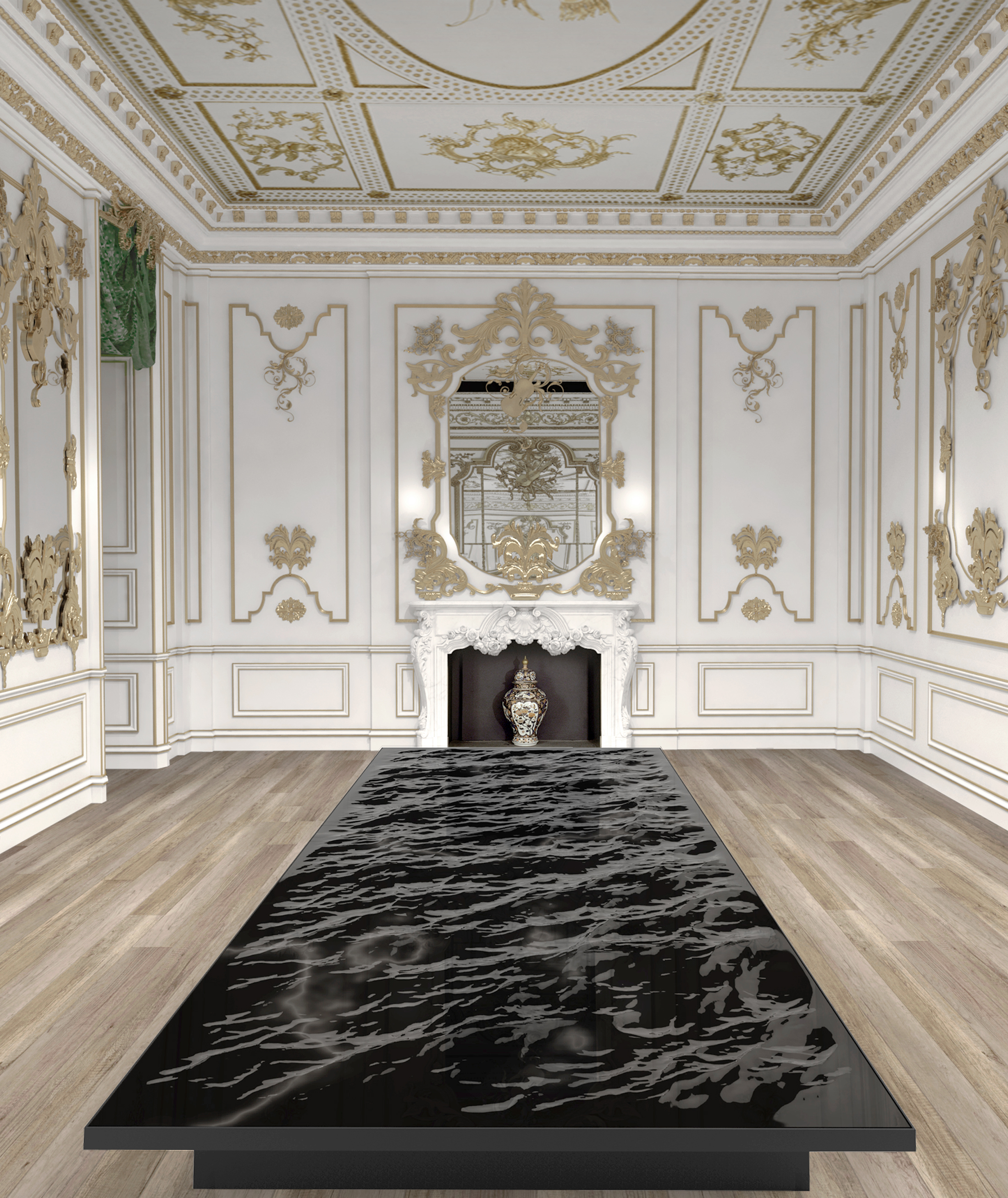 This year, highlights will include The Green Room by design duo Glithero, which will conceptually respond to the passage of time with a revolving composition of colored strings in a stairwell void; Benjamin Hubert’s Foil, which will comprise a custom LED system and 20-meter-long (66-foot-long) undulating ribbon made with 40,000 reflective metallic elements to make light dance around a gallery space; and Liquid Marble, which will explore the materiality of marble with a fluid-appearing piece designed by Mathieu Lehanneur using 3D software.
