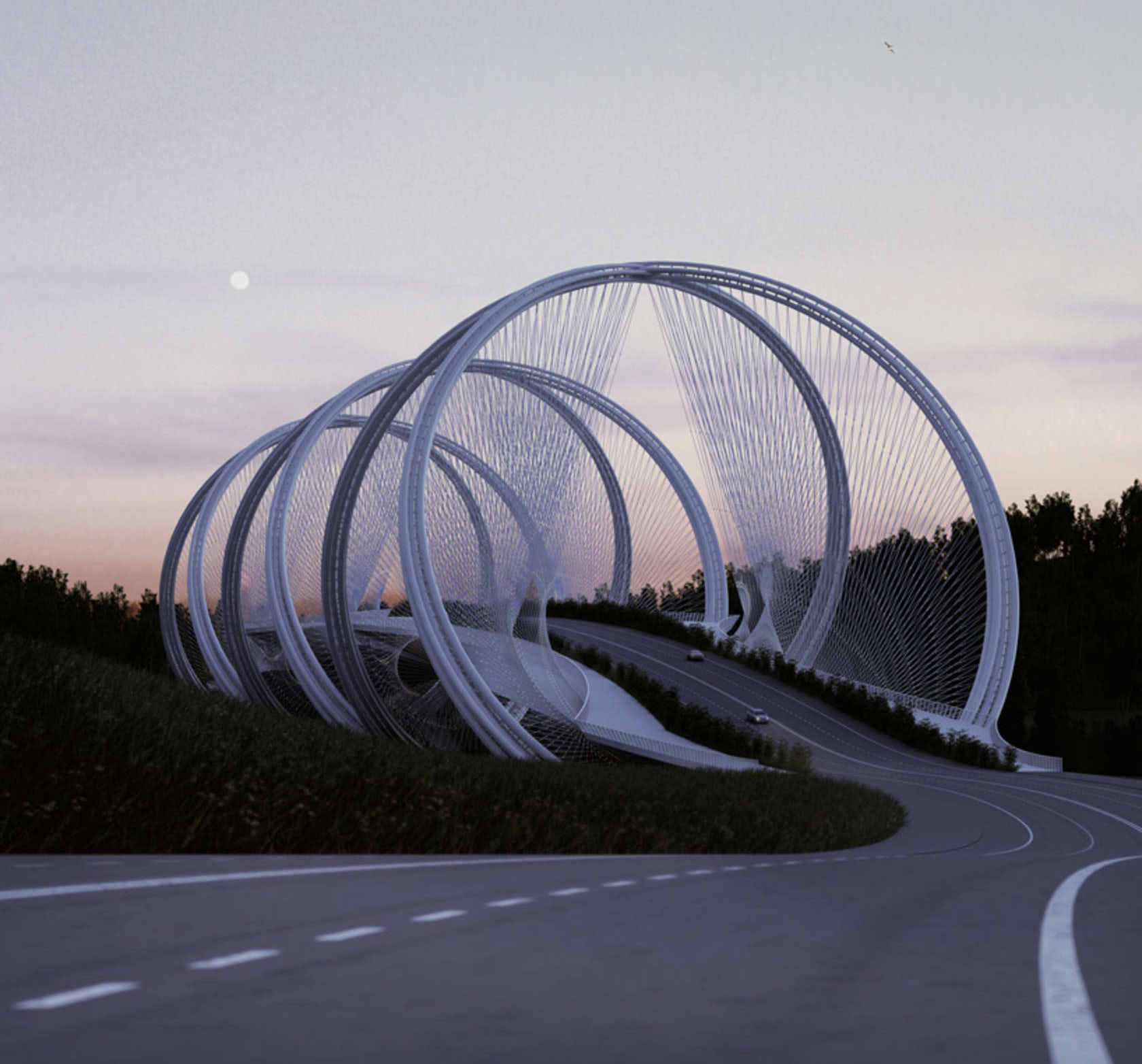 The bridge will span the Giu River, linking the city of Bejing to the mountainous region of Zhangjiakou to the north, where the Olympic games will be held. In addition to DNA, the helix design also refers to the Olympic rings.