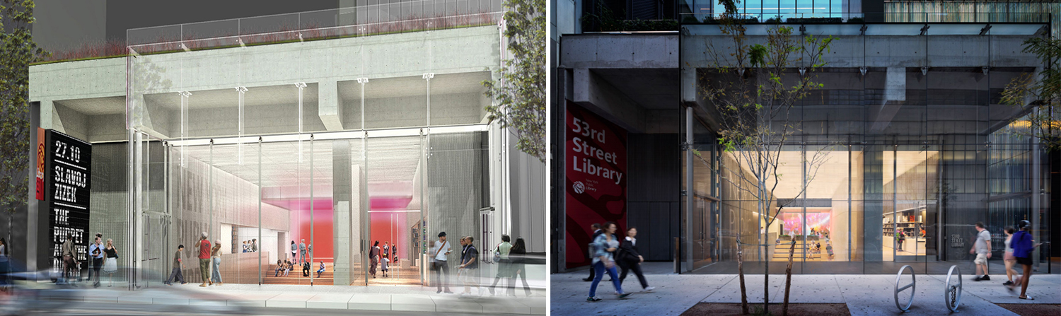 However, in 2013, the City of New York unveiled the new vision for the 53rd Street branch by Norten’s team: a 30,000-square-foot renovation project, set almost entirely below grade and featuring a transparent glass exterior that allows pedestrians to view activity within the structure.