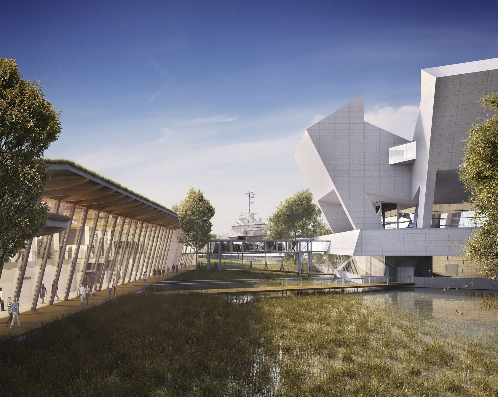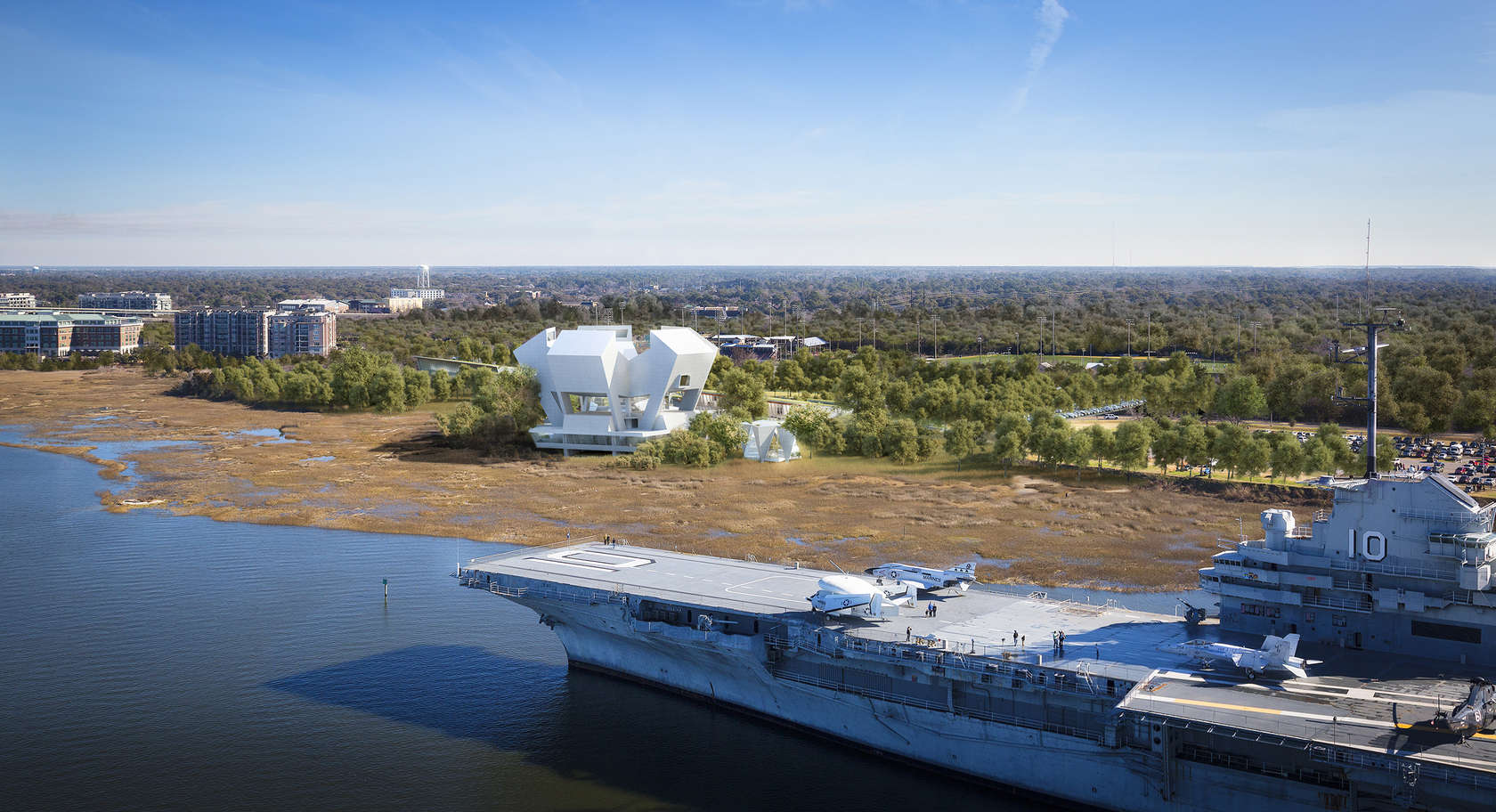 Safdie Architects’ ever-expanding portfolio of iconic cultural buildings in America is to grow with the addition of the National Medal of Honor Museum at Patriots Point in Mount Pleasant, S.C. Joining the sculptural forms of the Kauffman Center for Performing Arts and the Crystal Bridges Museum, Safdie has unveiled an equally distinctive structure for Charleston Harbor, dedicated to those who received the nation’s highest military honor.