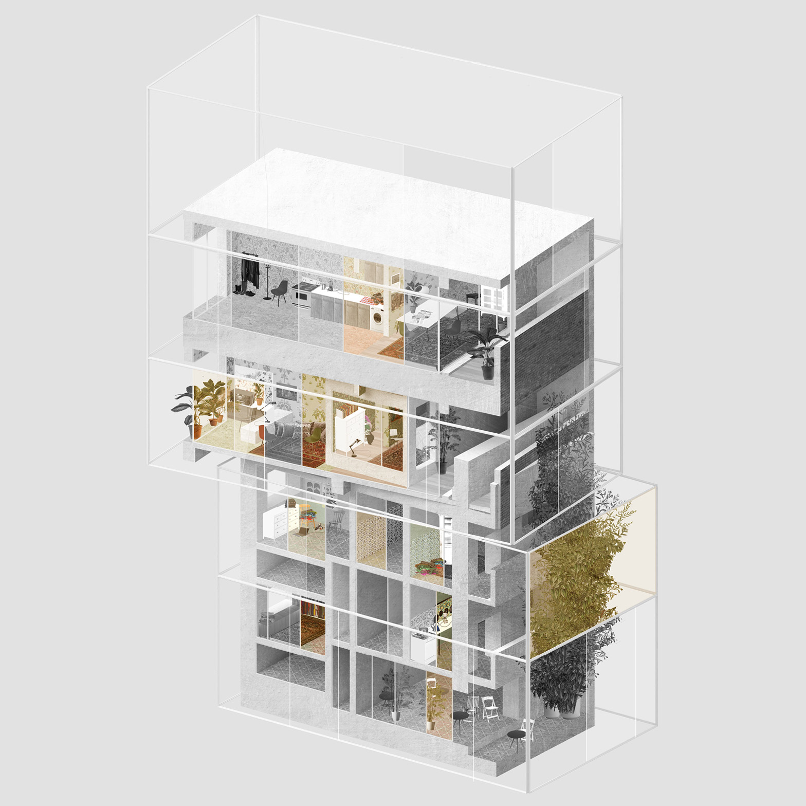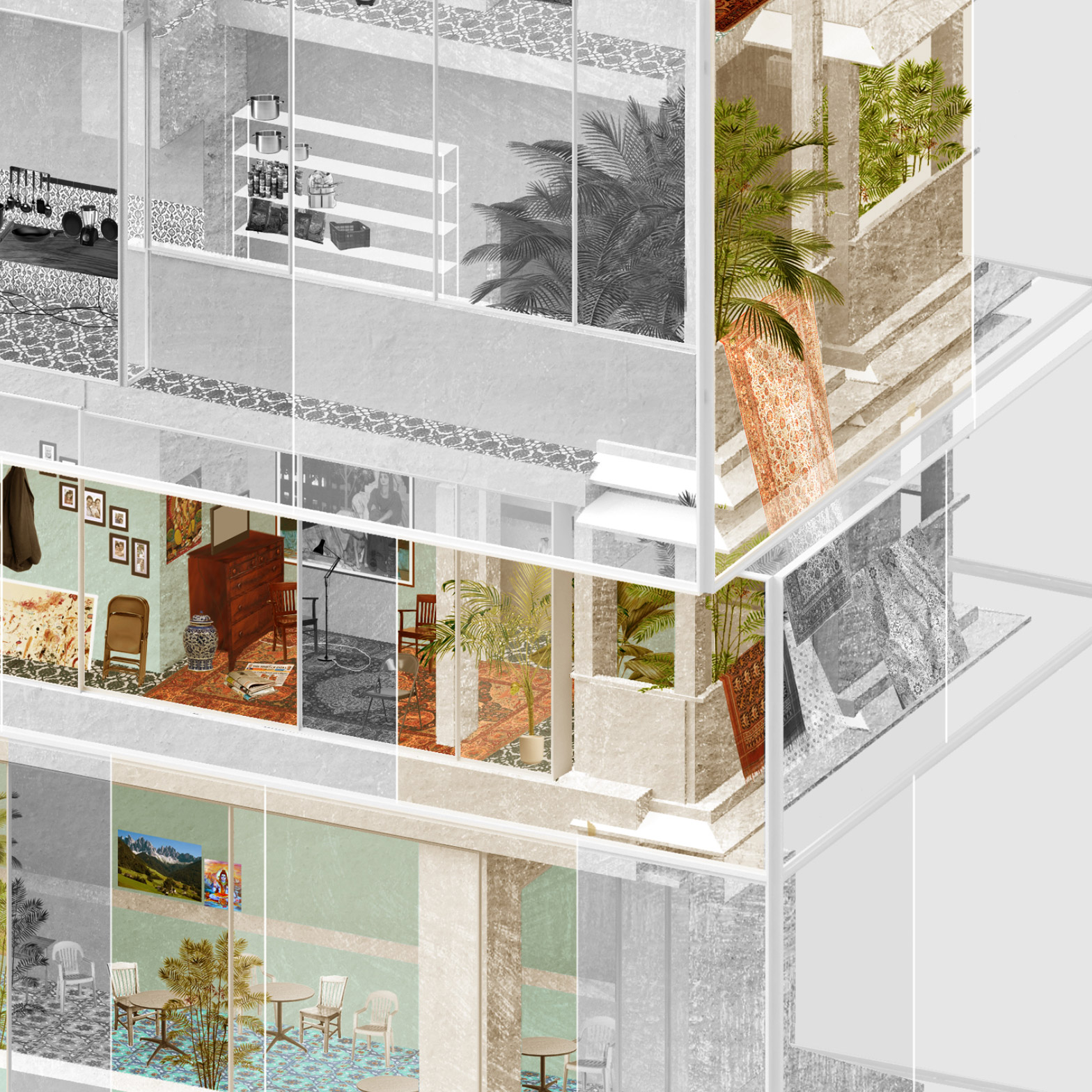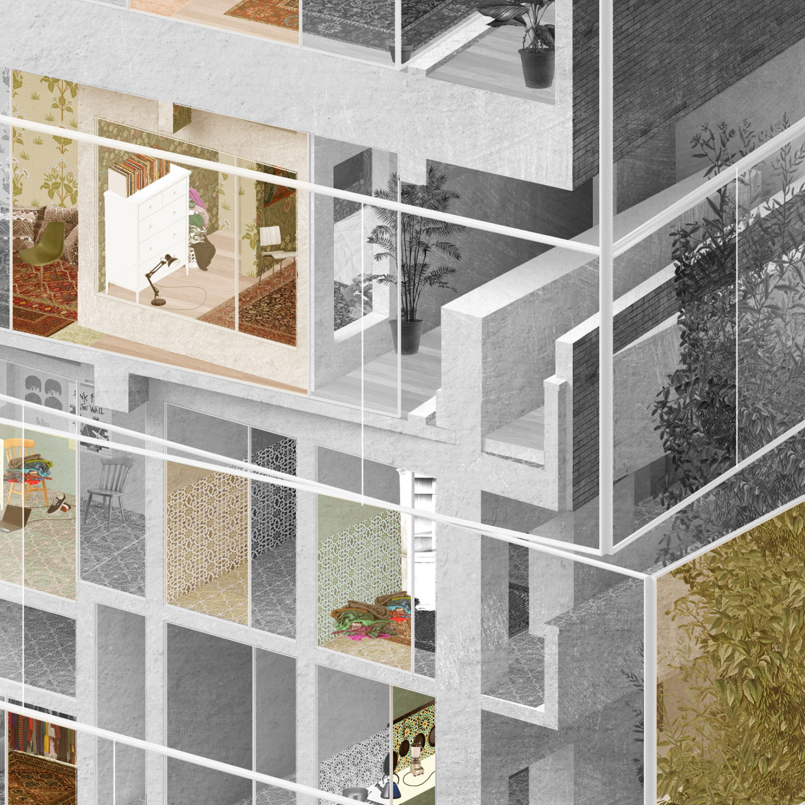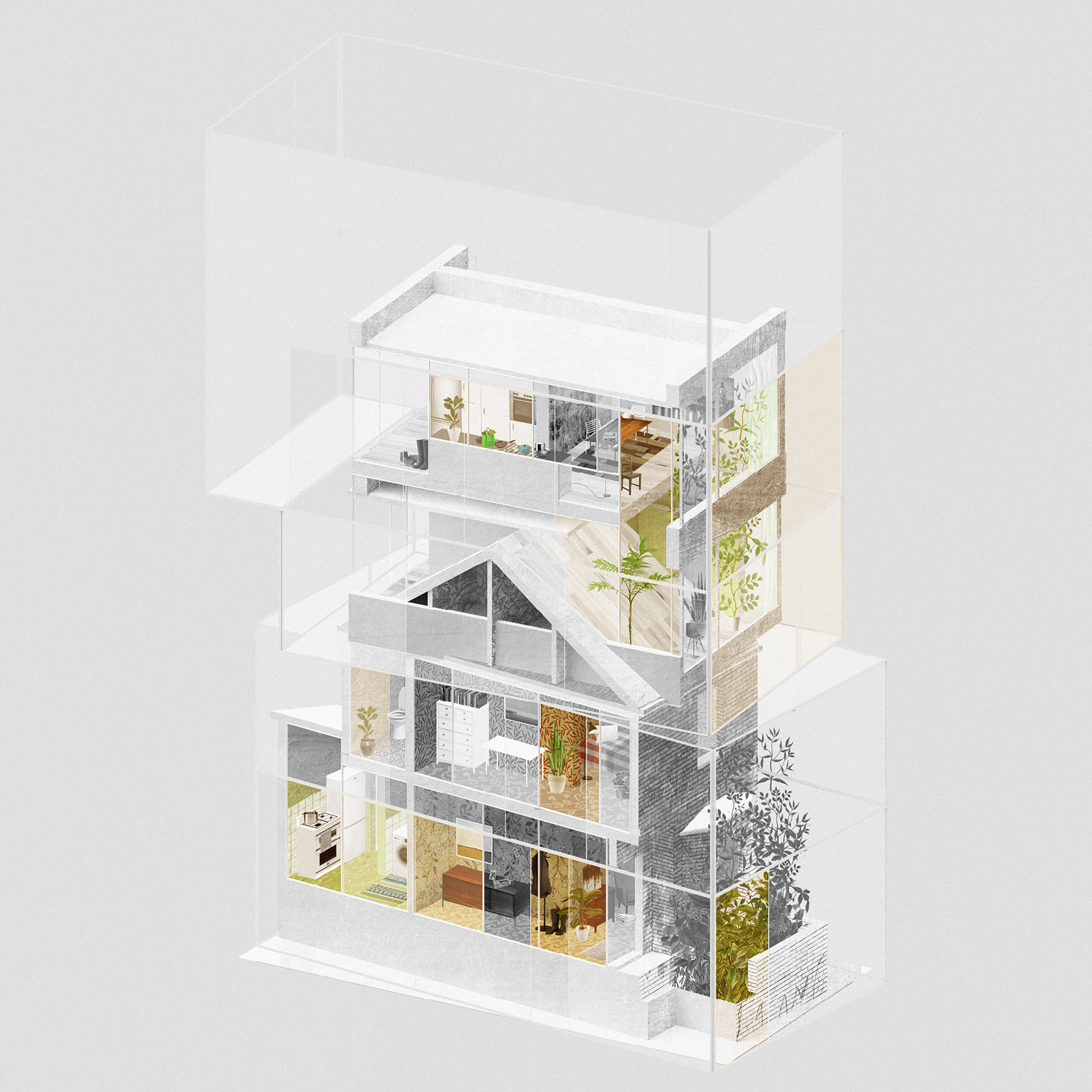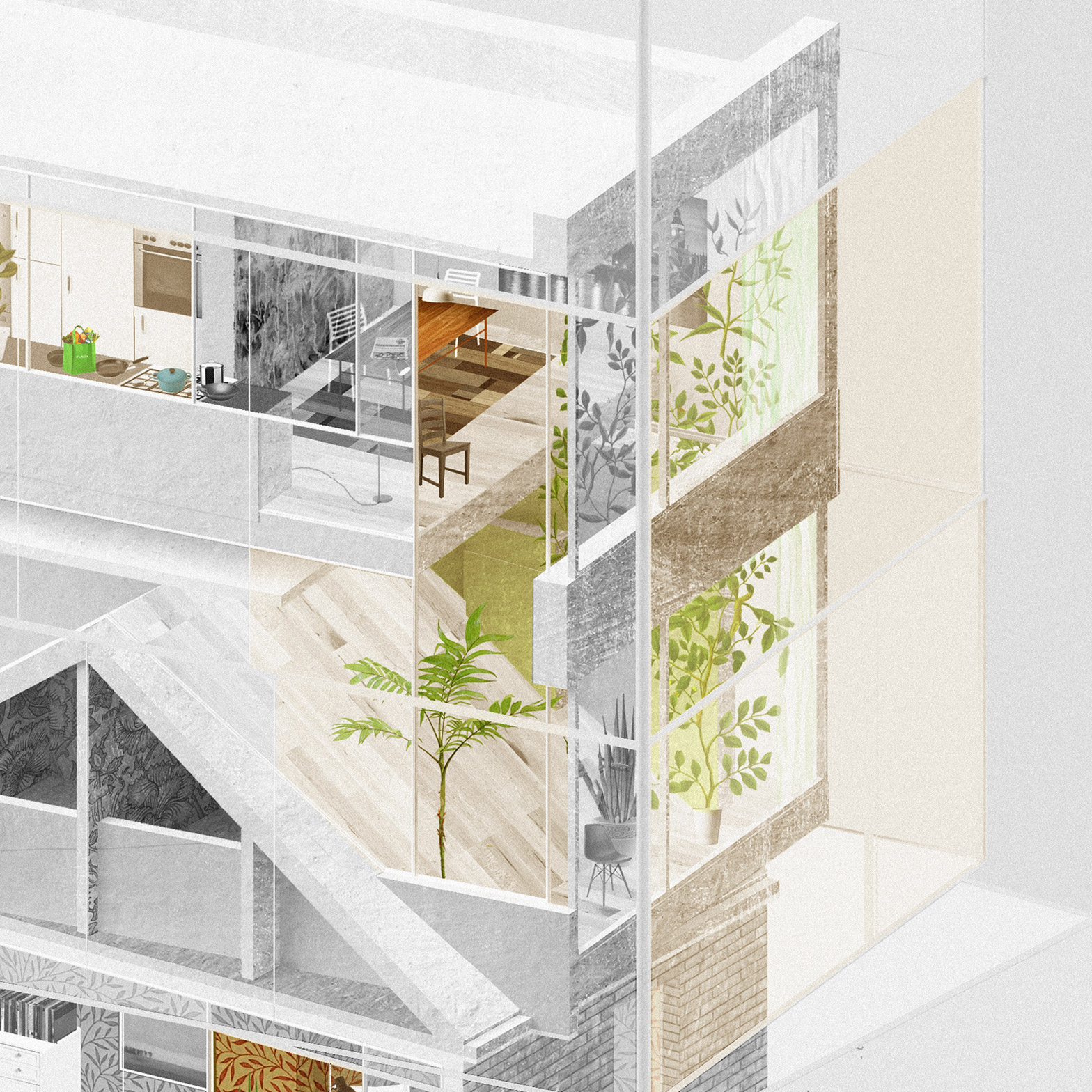 “The drawings suggest not only an intersection of architecture, but one of climate, sound, smell and taction,” said Wakelin. “The end result is a structure that bridges this fragmentation, a unified sense of home, which can exist only within the human mind.”