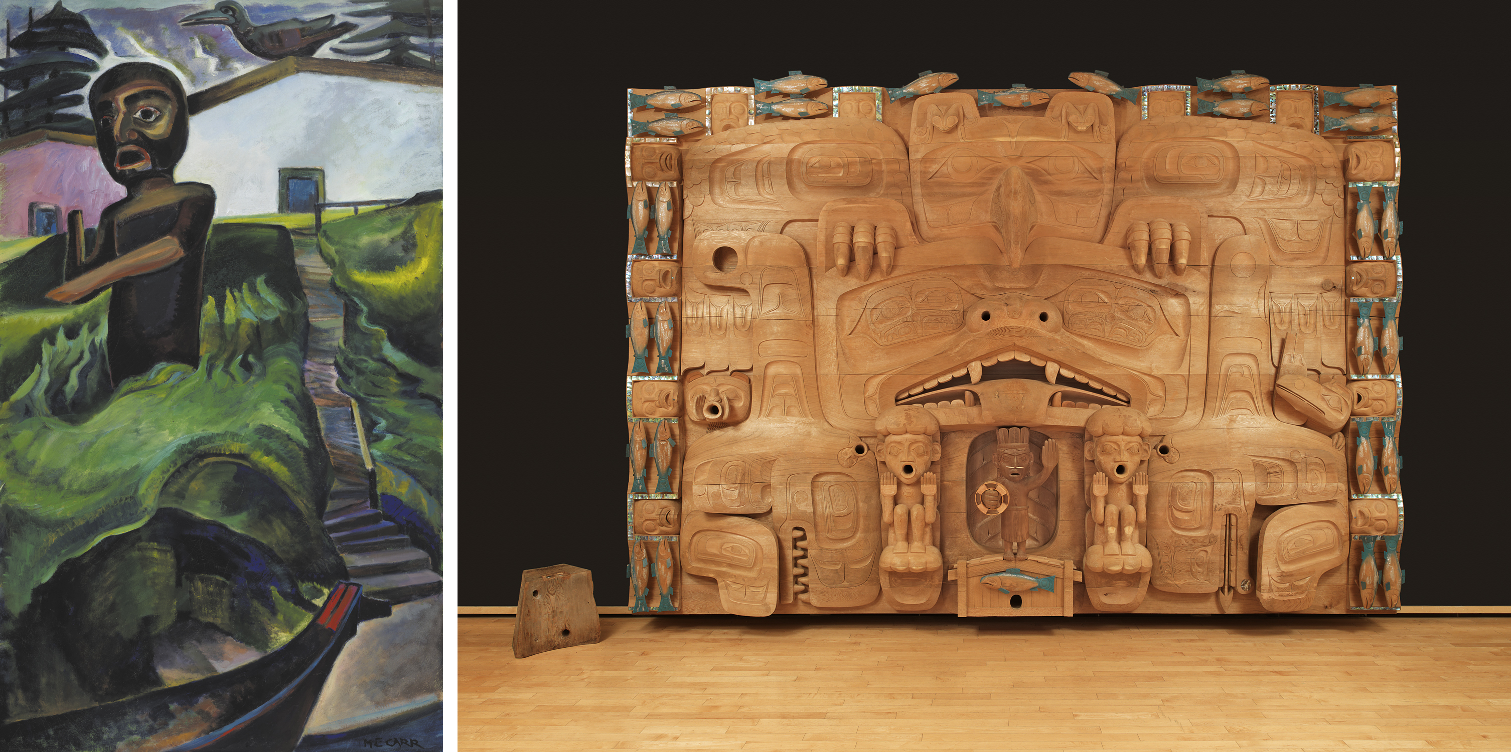 Artworks on display include The Crazy Stair by Emily Carr (left) and The Dance Screen by James Hart