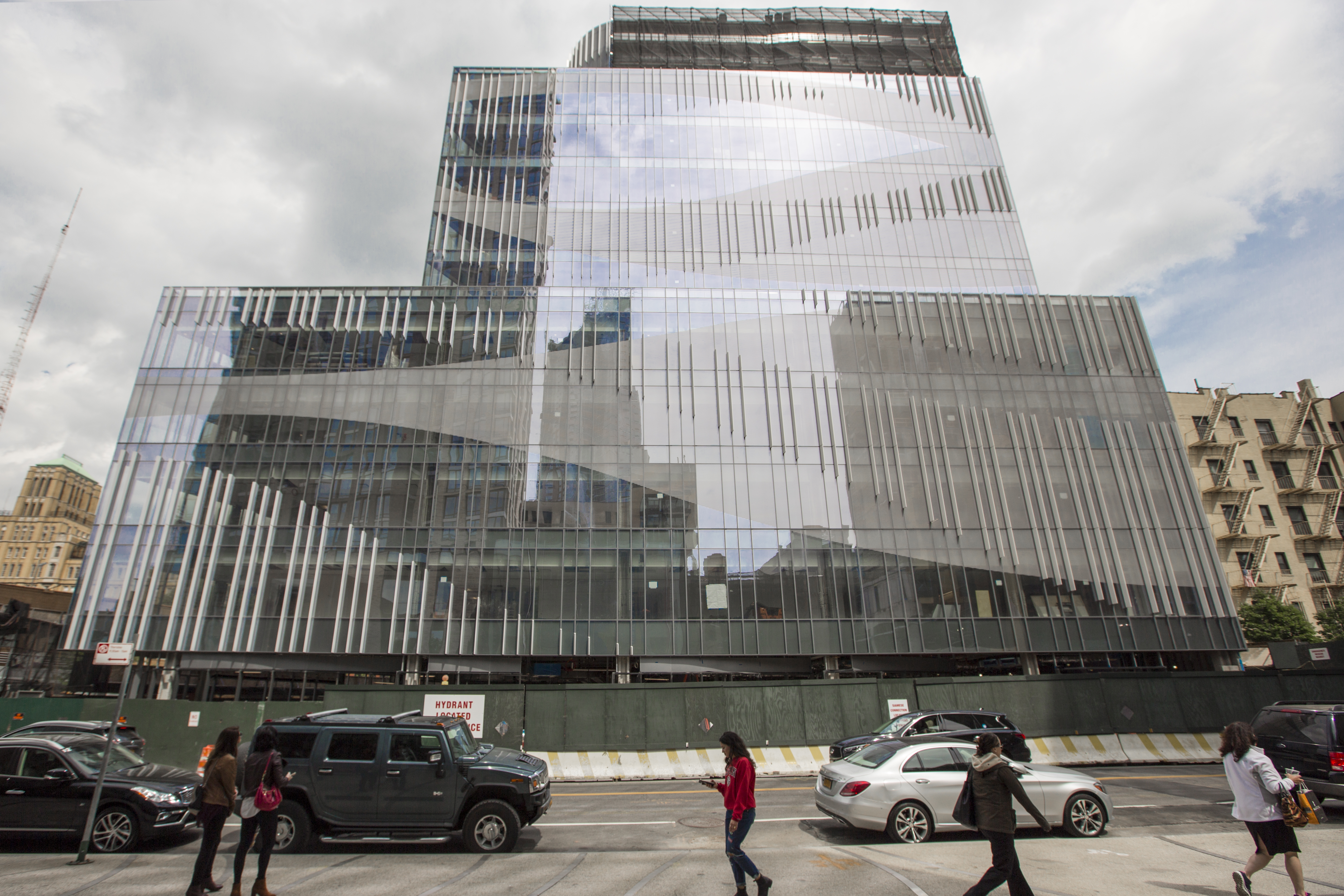 According to the architects, there is no single right angle in the building. Its entire design, from the bottom to the top floor, moves in a circular motion and culminates at the corner of Fulton Street and Ashland Place. At night, the building stands as a beacon of animated light for passersby, and during the day, it ushers people in with its lively design.