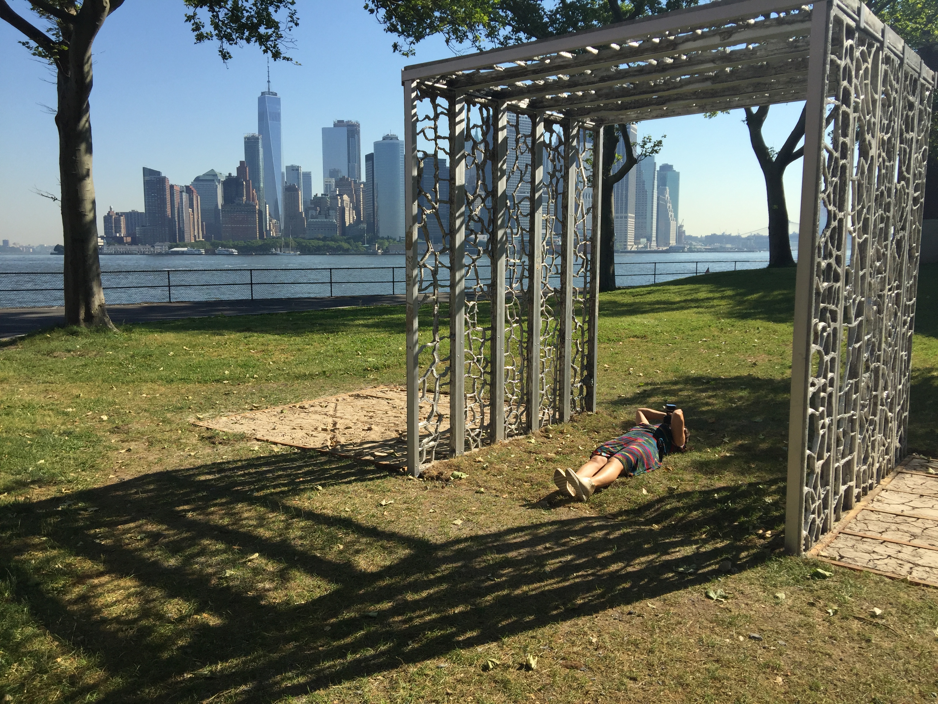 The multi-panel structure features an intricate design thanks to the innovative prefabrication method made up by the design team. They used wooden trays of cracked clay, sourced from a local glacial deposit in Queens, and poured the hot aluminum through the natural crevices formed within the dry clay.