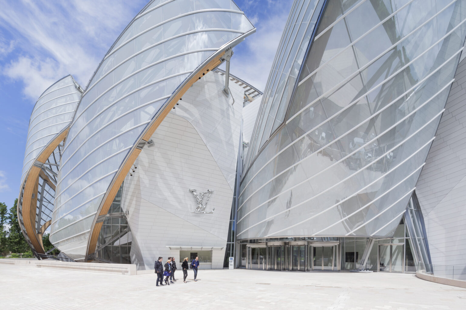 Vue du bâtiment de la Fondation Louis Vuitton (façade sud) et de l’entrée Bois de Boulogne; © Gehry Partners, LLP and Frank O. Gehry; photo by Iwan Baan, 2014