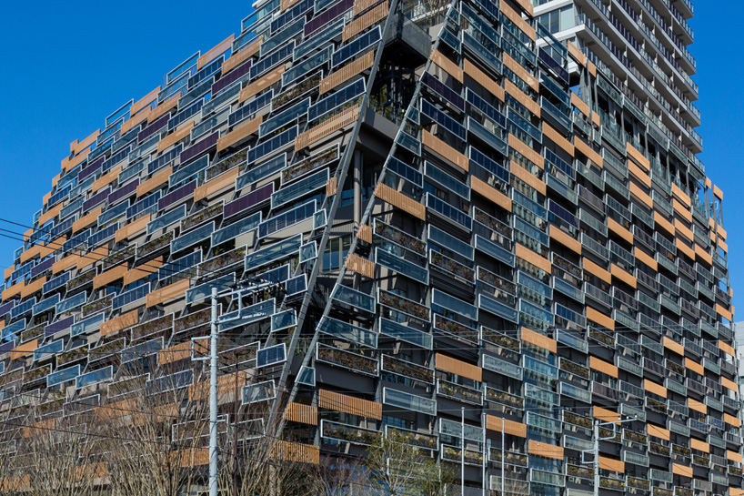 The one-million-square-foot mixed-use building is comprised of two primary volumes, with council offices housed in the trapezoidal lower half and apartments in a vertical tower above. Its tapered base and slender upper section reflects the firm’s metaphorical concept for the building: Kuma designed the complex as a giant tree, aiming to create a structure that functions as a truly natural organism within Tokyo’s manmade forest of concrete, steel, and glass.