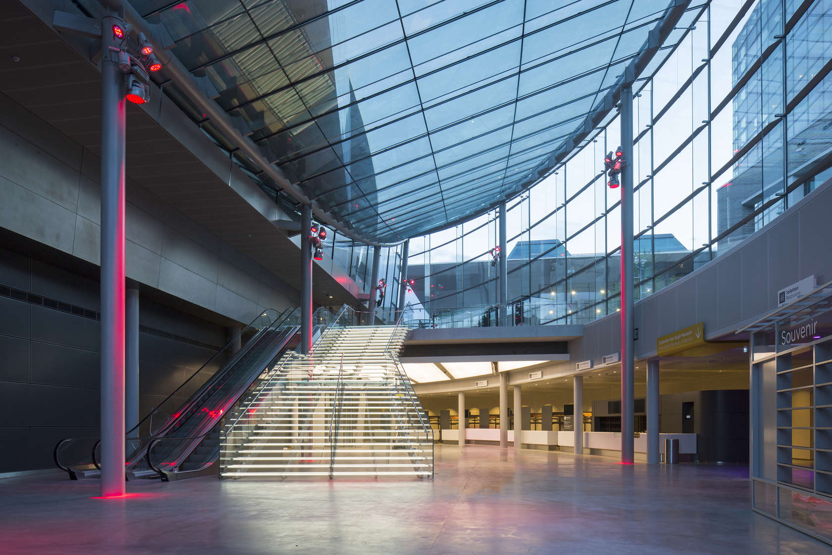 The architects’ main aim was to create an atrium in which there was a great clarity of space and a clear path for visitors to quickly orient themselves. “Upon entering the museum, visitors are immediately able to grasp the layout of the building complex and choose a direction,” says Van Heeswijk. “In the specification of materials and detailing, clear organization, visual calm, and a high standard of finishing were the main ambitions.”