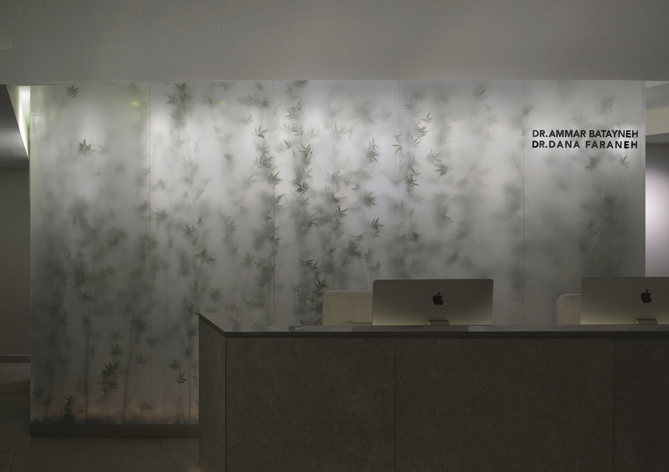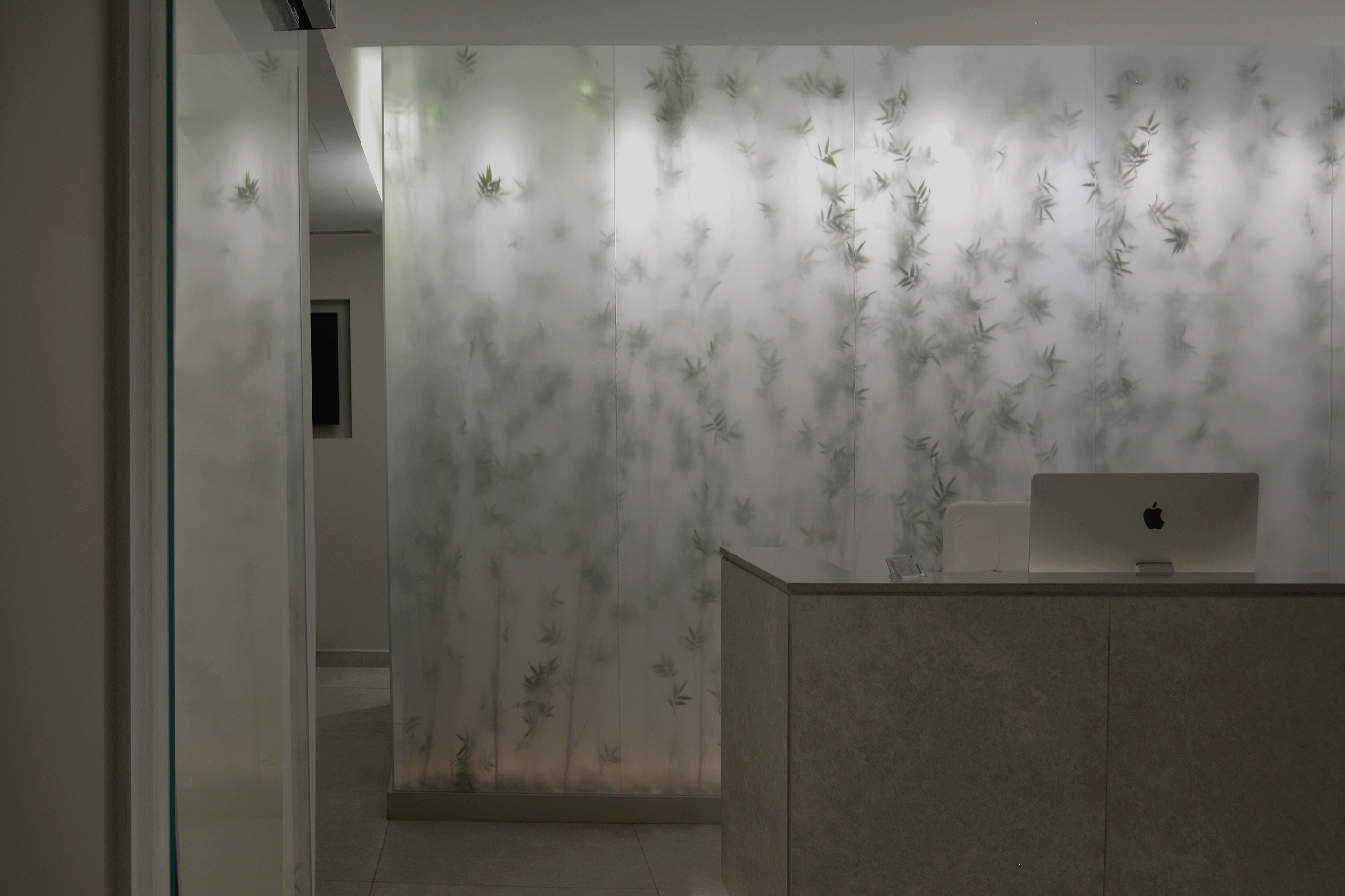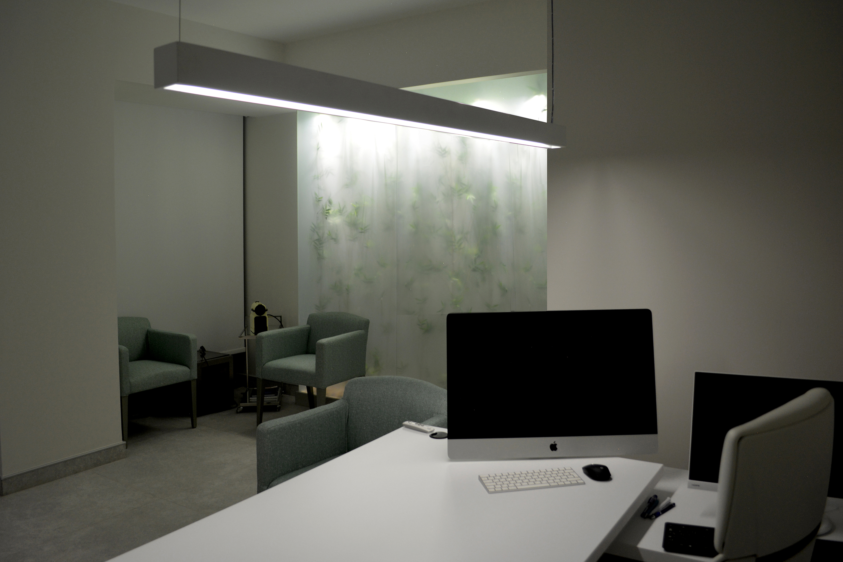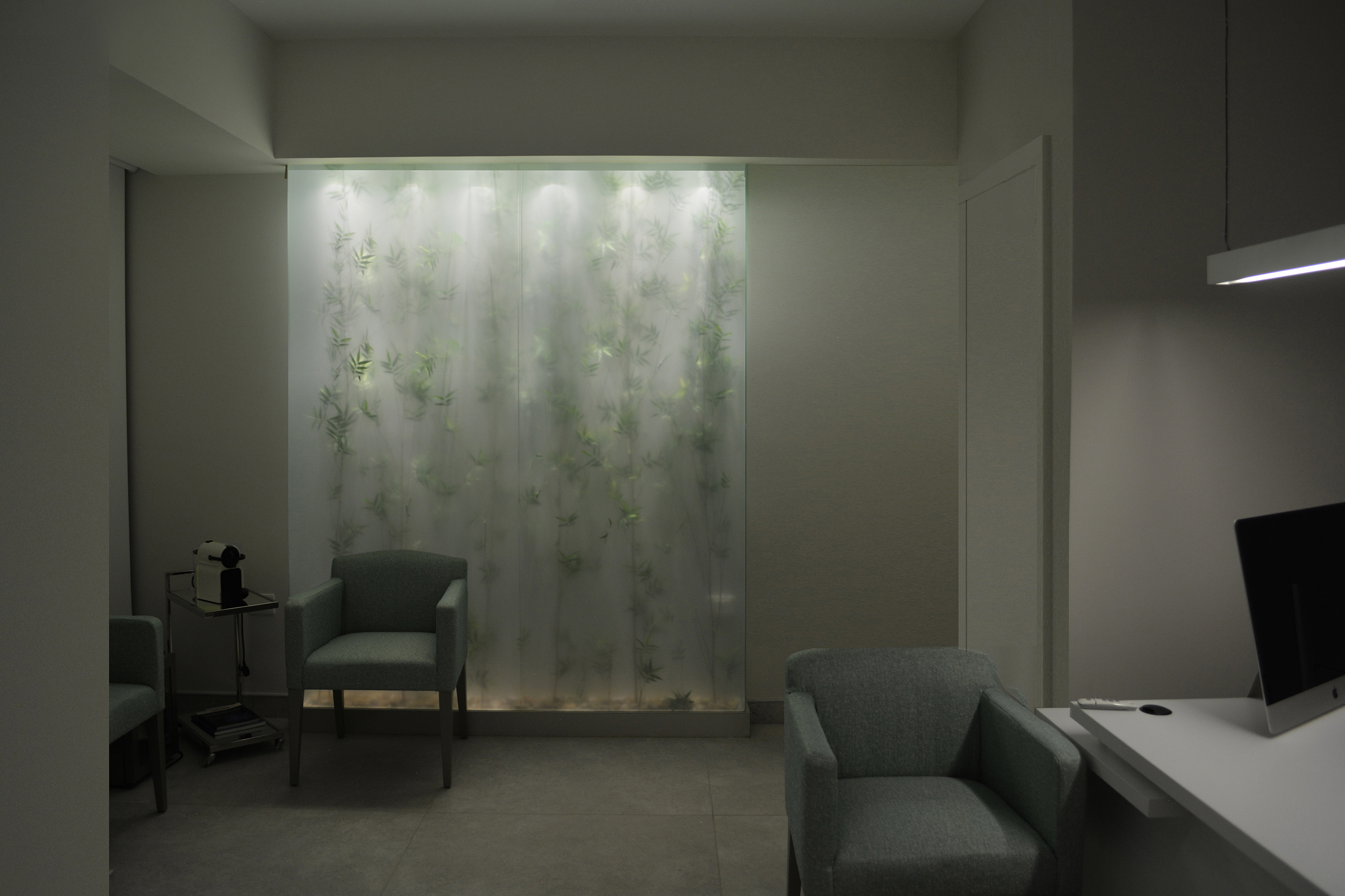Beside the aesthetic aspect of creating a this visual statement and a new identity to the new clinic, this small intervention can be a solution for illuminating windowless dimmed spaces we would face in any project.