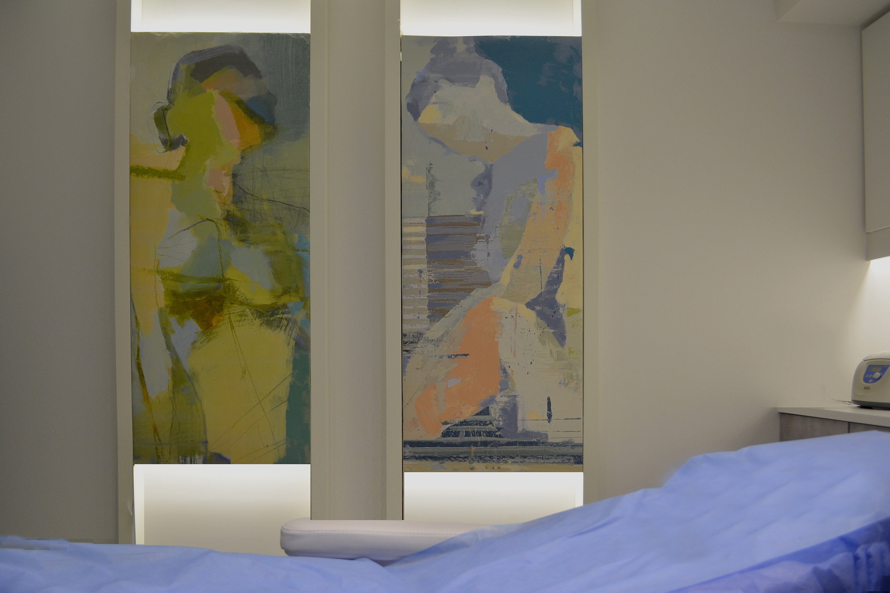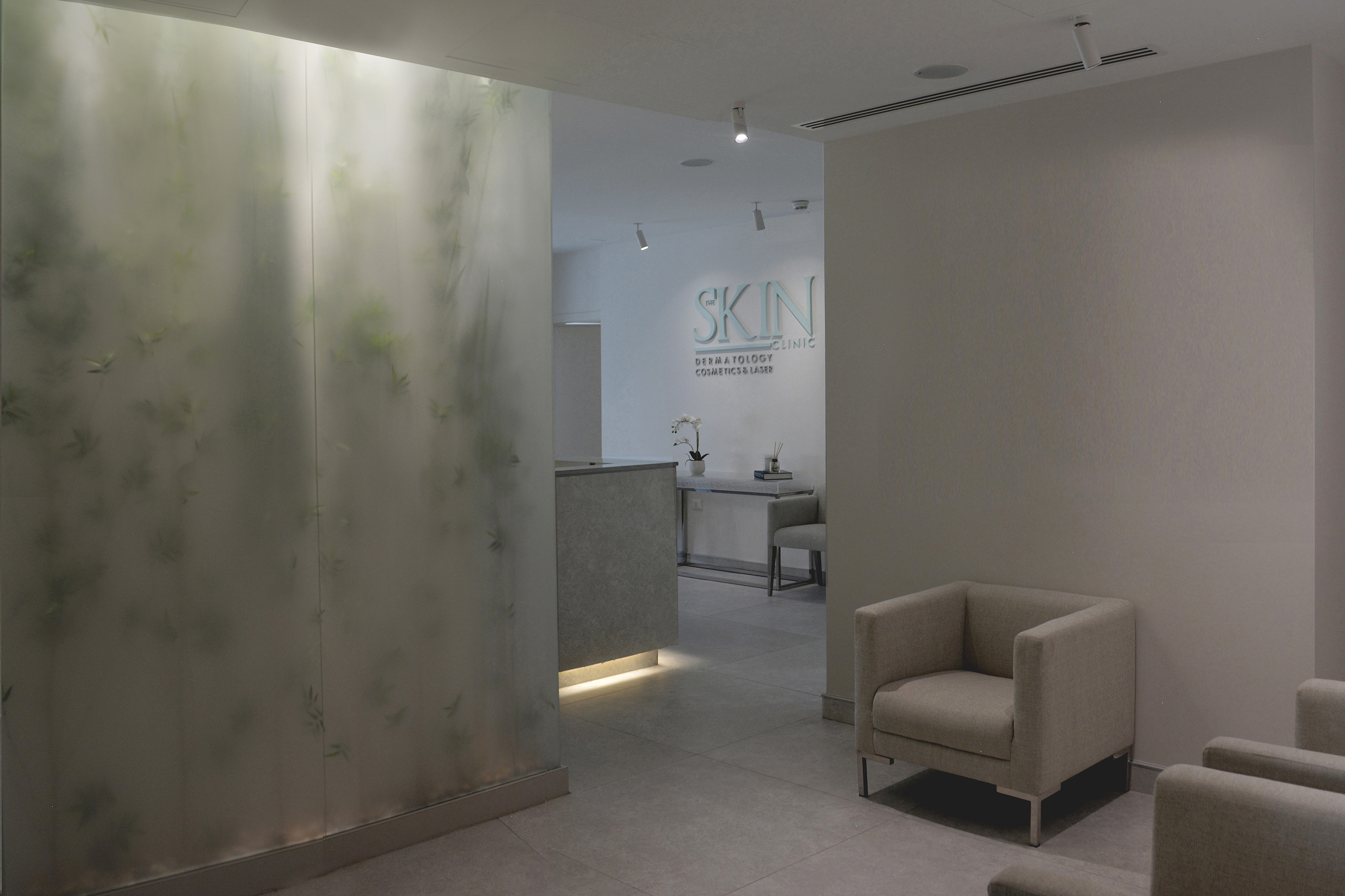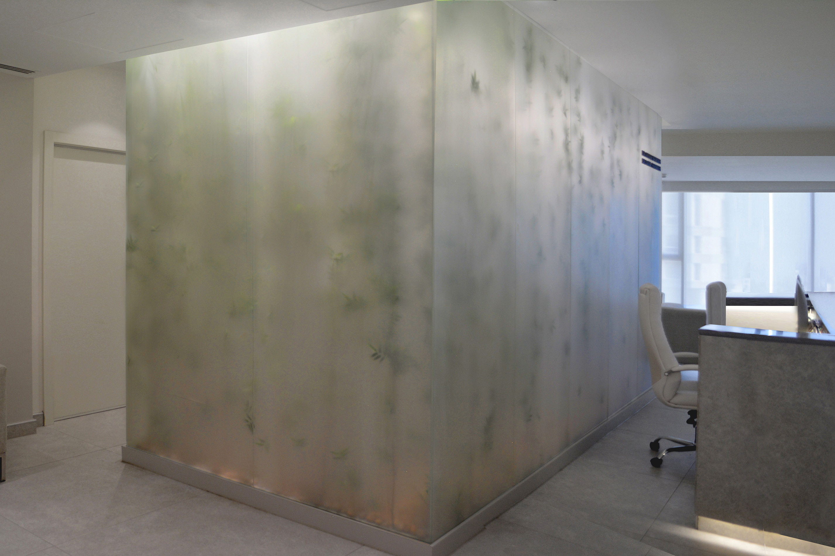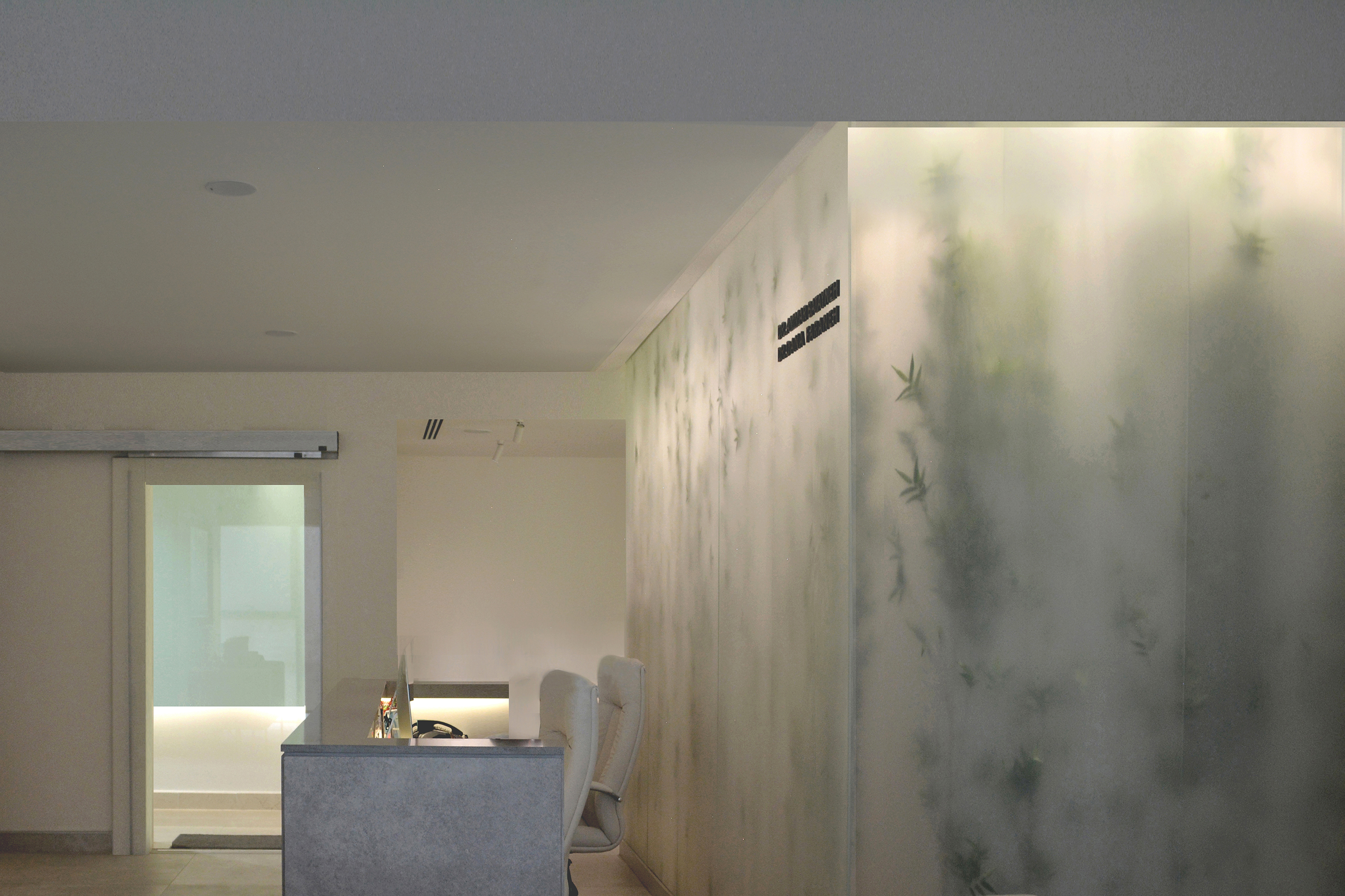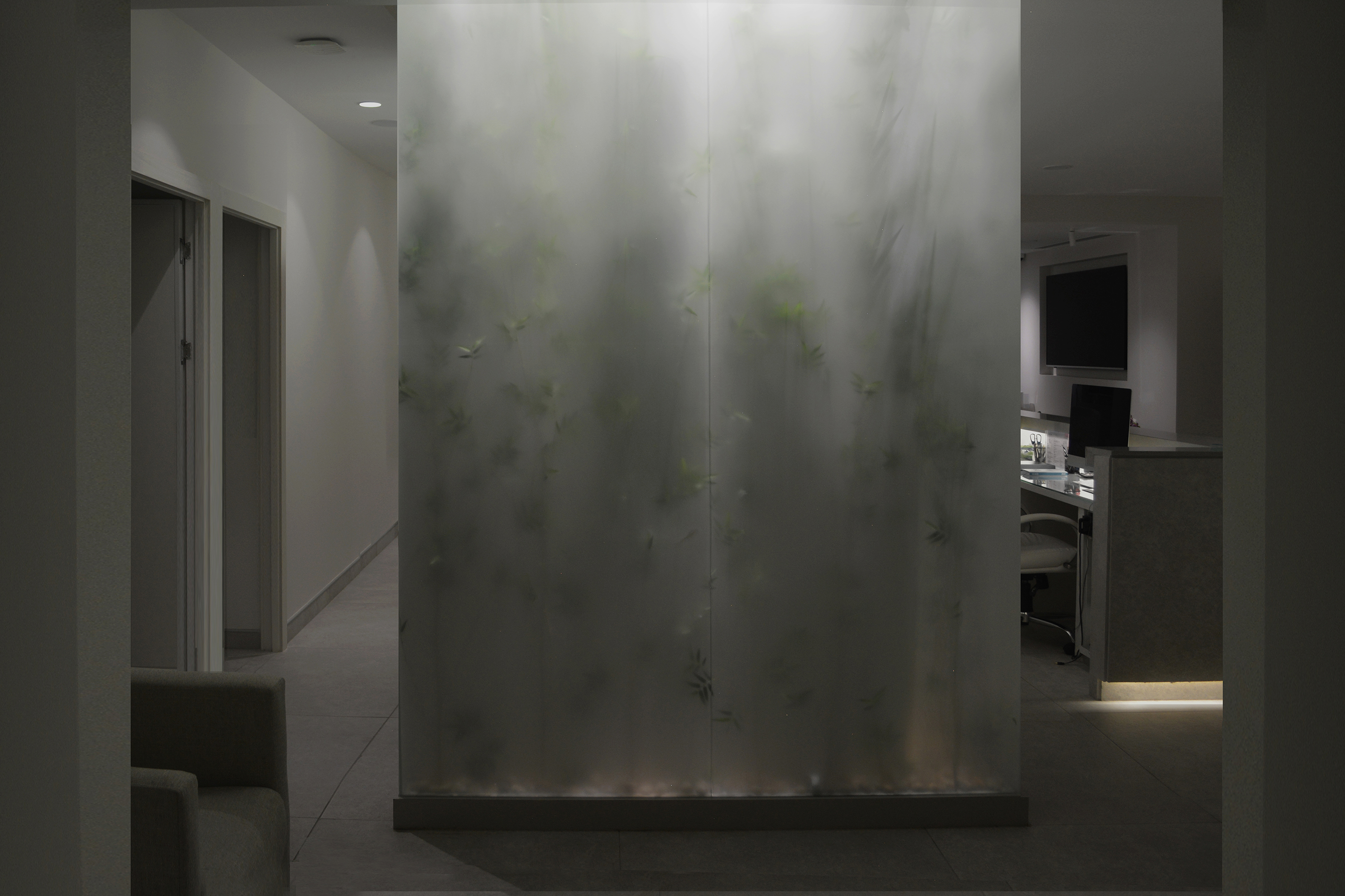 Beside the aesthetic aspect of creating a this visual statement and a new identity to the new clinic, this small intervention can be a solution for illuminating windowless dimmed spaces we would face in any project.