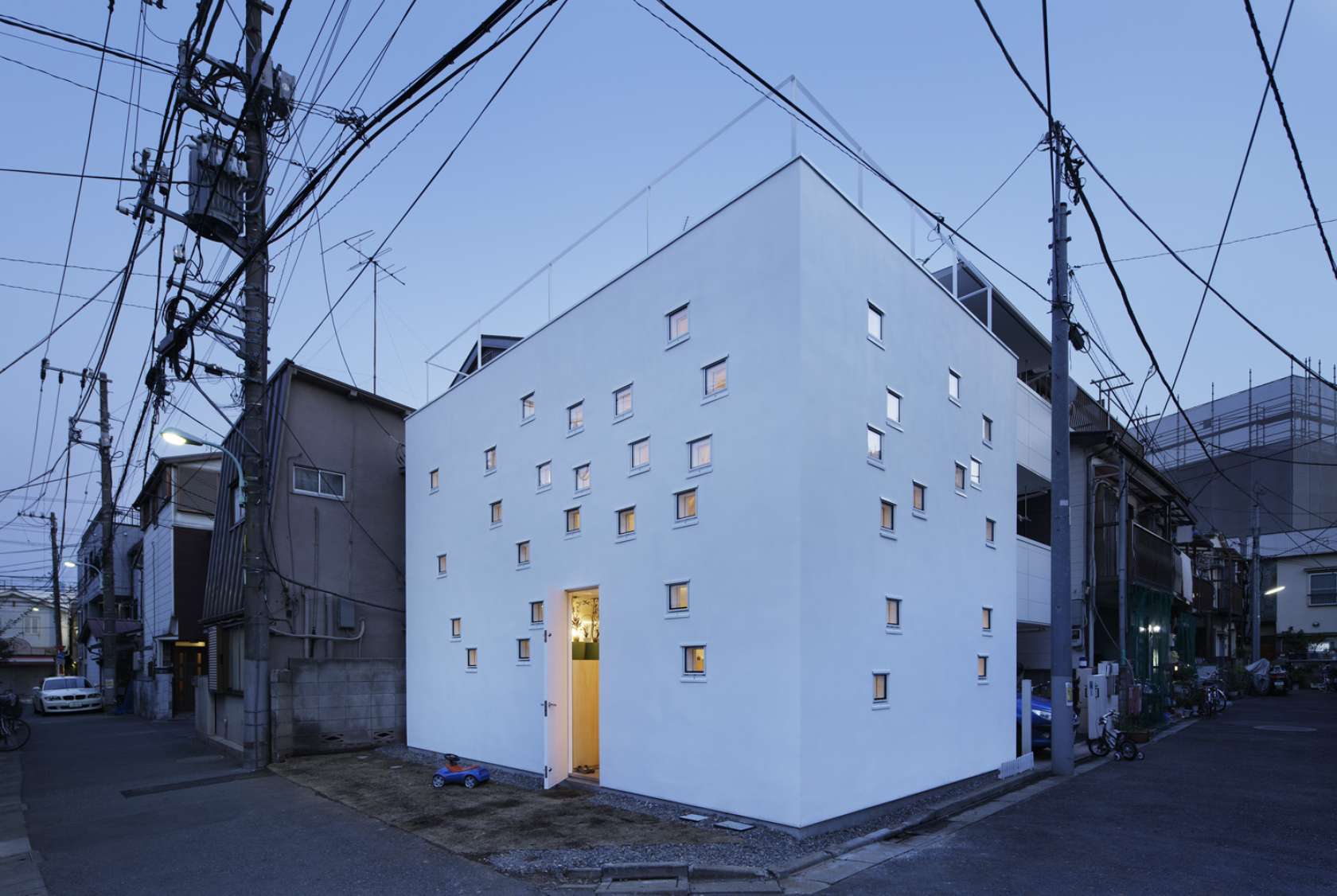 Located in the densely packed Taito Ward of Tokyo, the design of this house was influenced heavily by the restrictions on its aspects — no windows could be placed on either side elevation, so light had to be filtered in from the front, back, and top without compromising privacy.