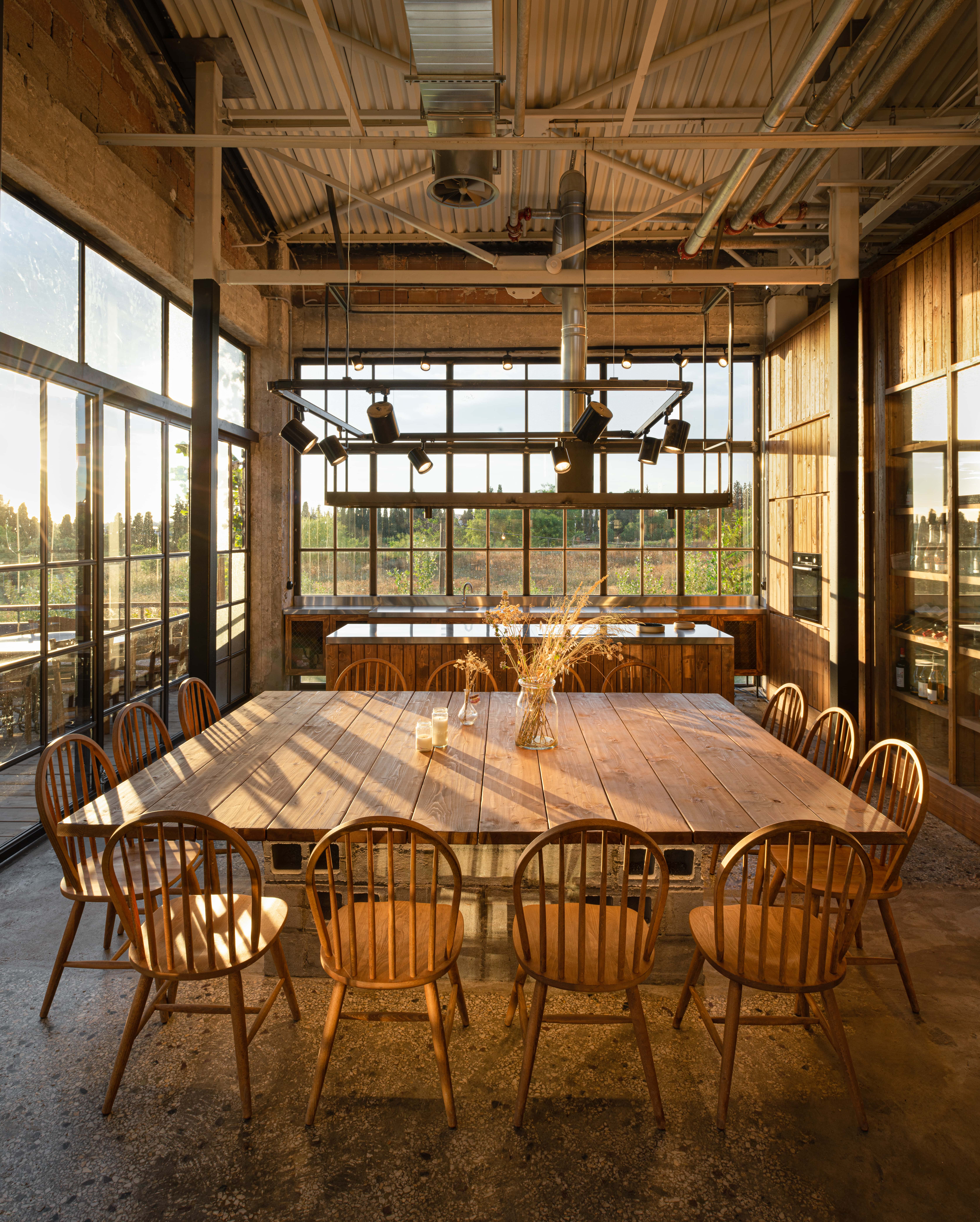 The greatest challenge in ERGON Agora East design process was the request to fit in one space different uses, define a hierarchy among them and achieve to keep them connected, not separated. ERGON Agora East is at the same time a super market, a winery, a restaurant, a bakery and a garden.