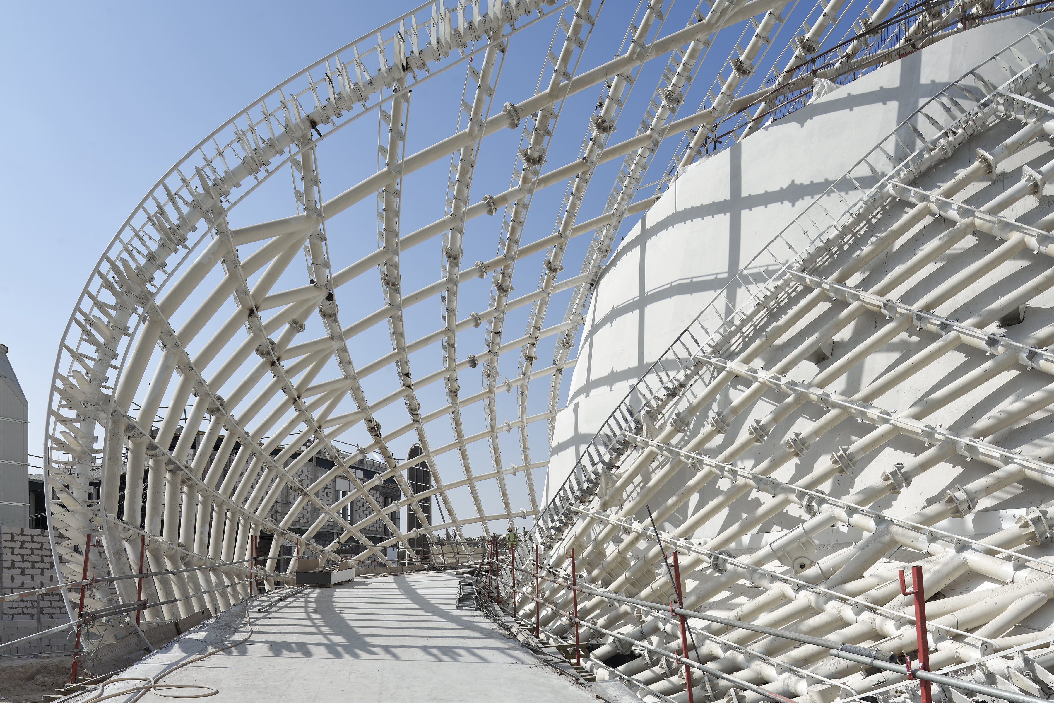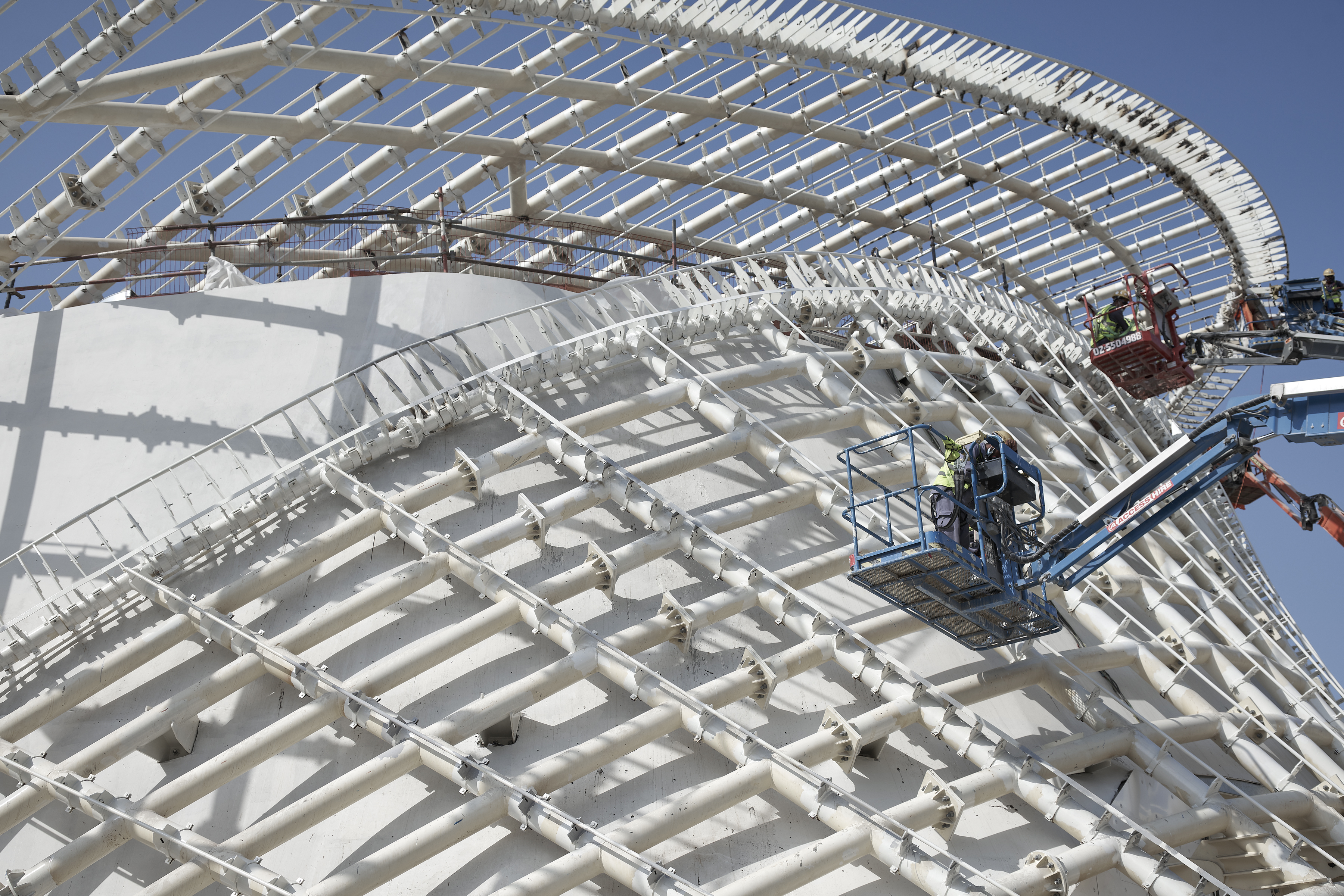 One of the requirements was to complete the project using 70% reused or recycled materials, which was a challenge that Metaform met by opting for steel construction. The fiberglass membrane, although difficult to recycle, can be reused by the producer, who specifically agreed with it.