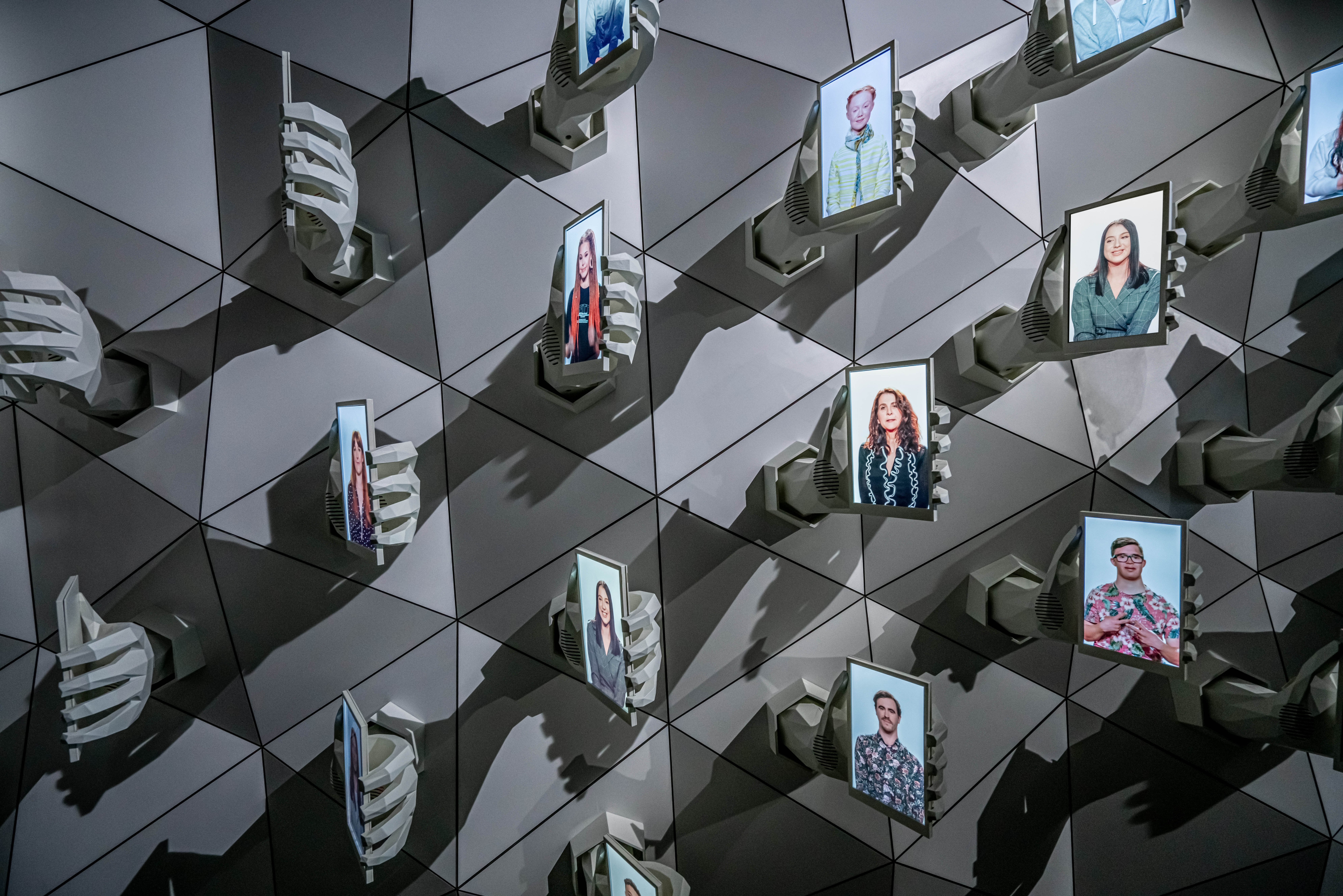Scenography and architecture are complementary in the mission to merge people with the exhibition. In a didactic, interactive, and intuitive way, different projections and animations display the country and its people. Collectively, it creates a continuous flux of images from start to finish for experiences on the top second floor. The ribbon becomes a multilayered scenography canvas, alternating floor, wall, and ceiling as means of expression.