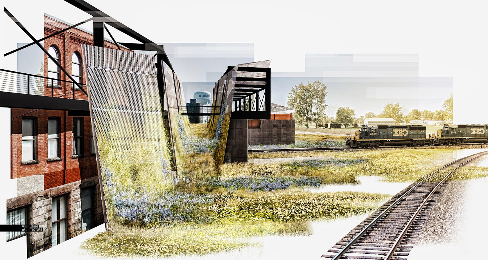 Not only did I insert the railroad tracks, but I began carving out more white space to free up the different zones of the image.