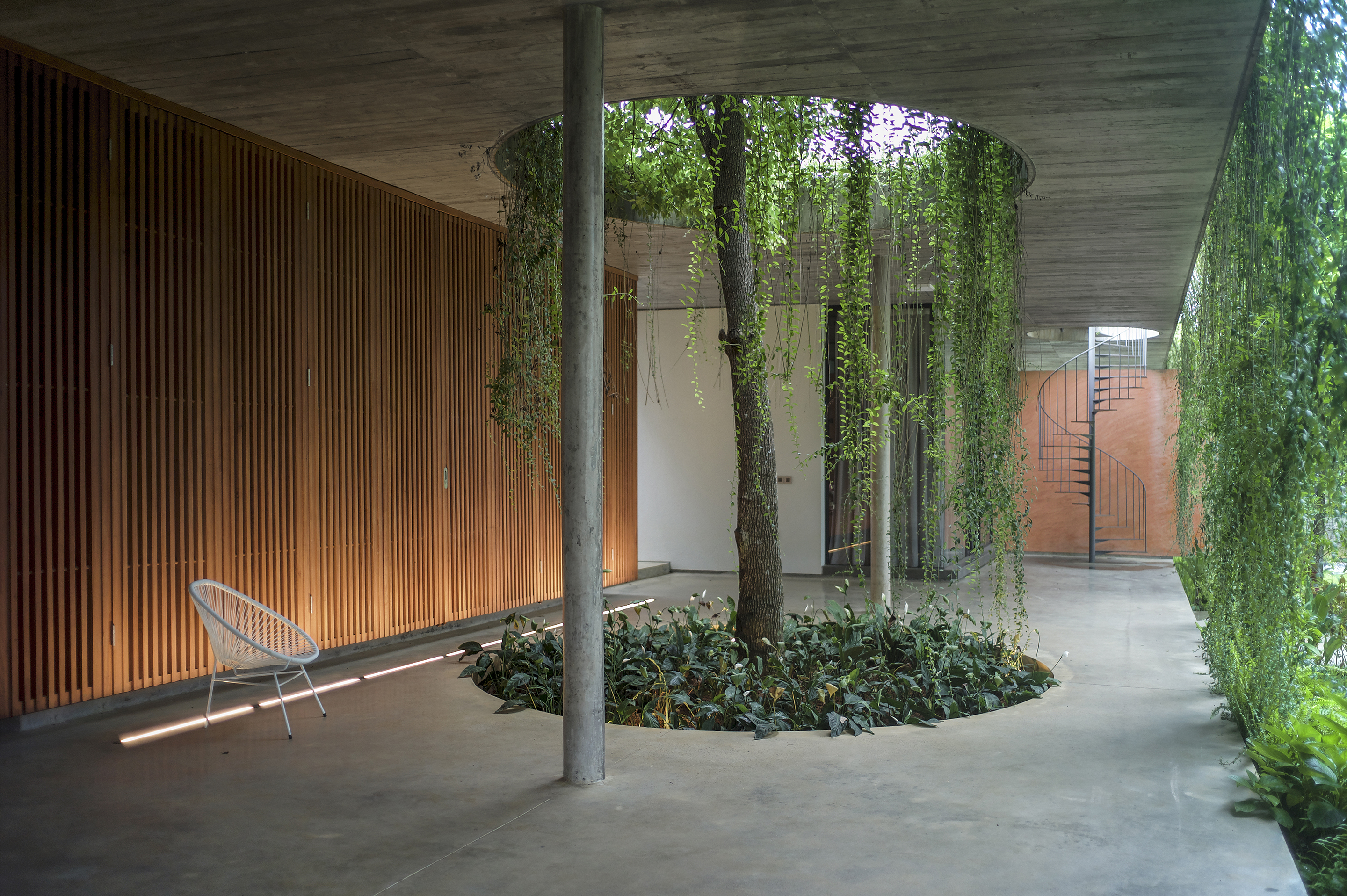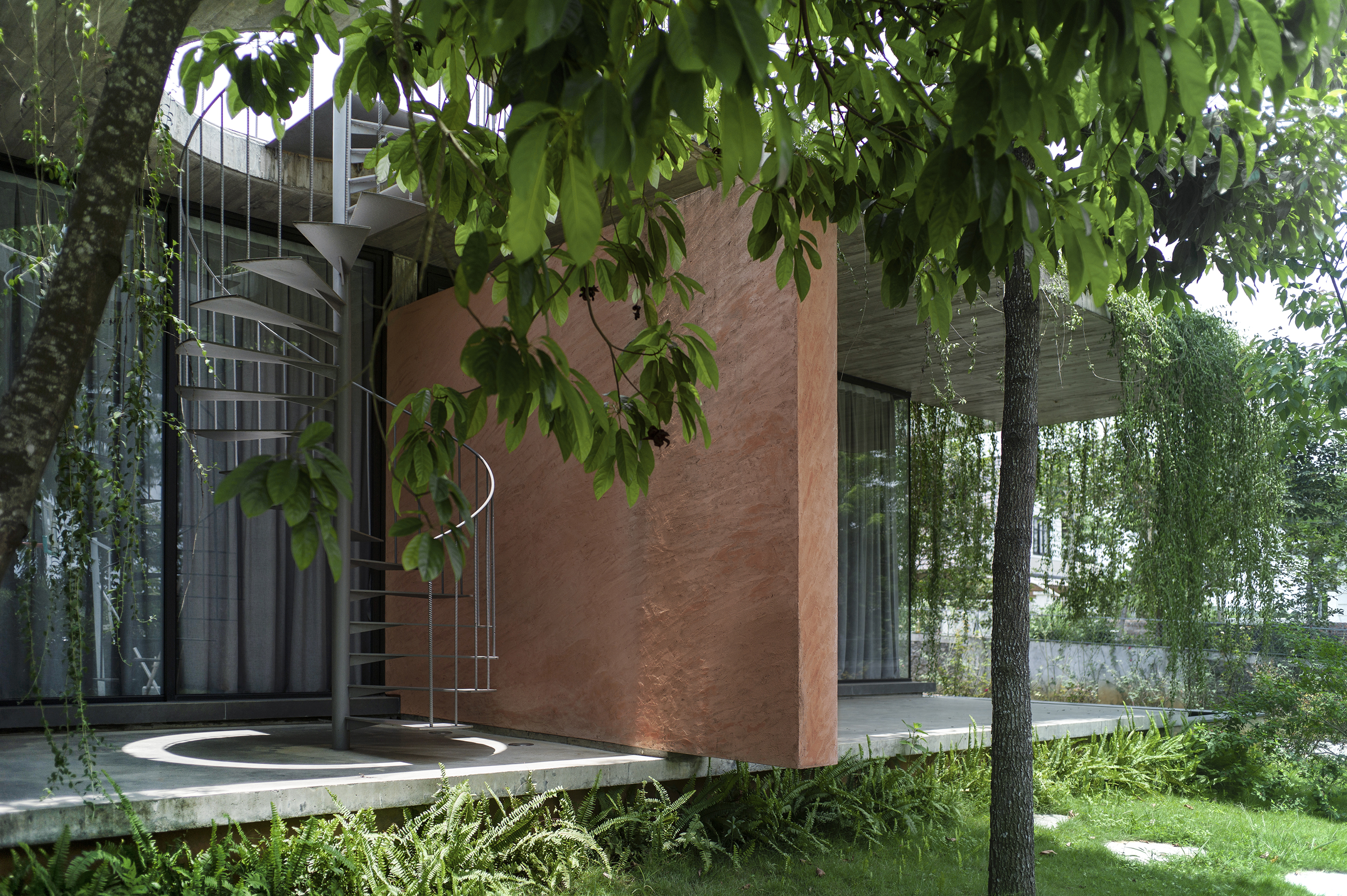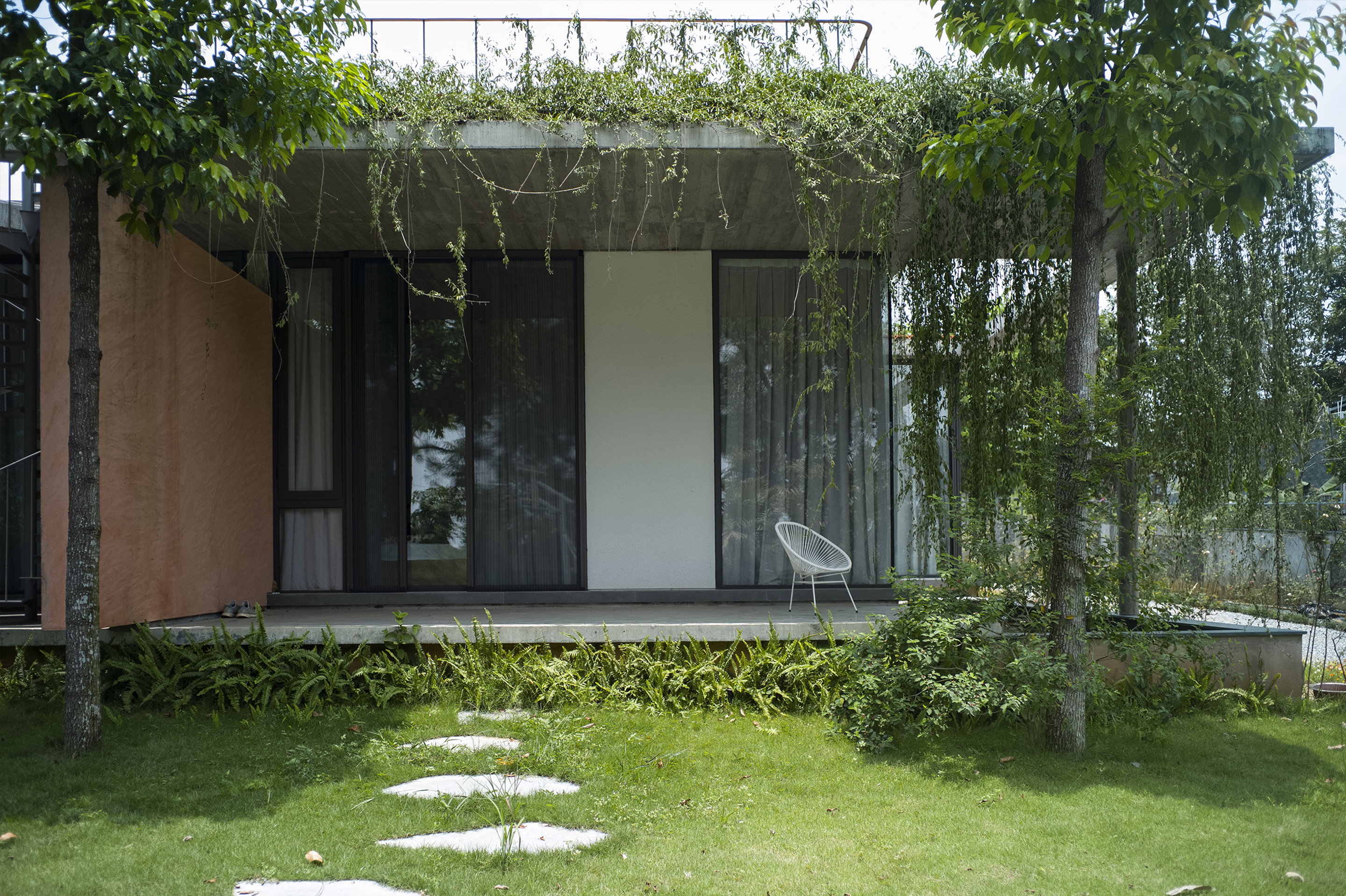 Villa LP – We were set to design a house for a three-generations family with different lifestyles between the family members. While the grandparents are used to the traditional Vietnamese lifestyle, the married couple and their children are familiar with the modern way of living in foreign countries. The elders in this family have been living in this area for a long time and have a strong connection with the neighbors and interact with their acquaintances daily while their children and grandchildren only travel to Vietnam a few times per year so big spaces to accommodate a large family gathering as well as multiple social events is a must.