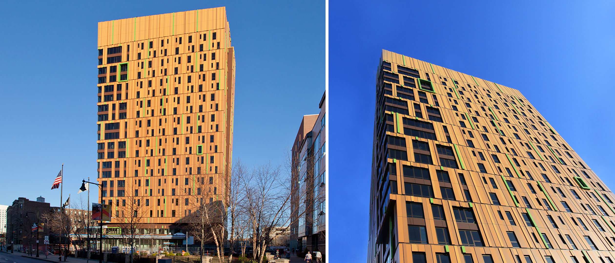 MassArt Residence Hall in Boston, by ADD, was clad in custom-colored Alucobond Plus ACM. Photo courtesy Kate Hensley