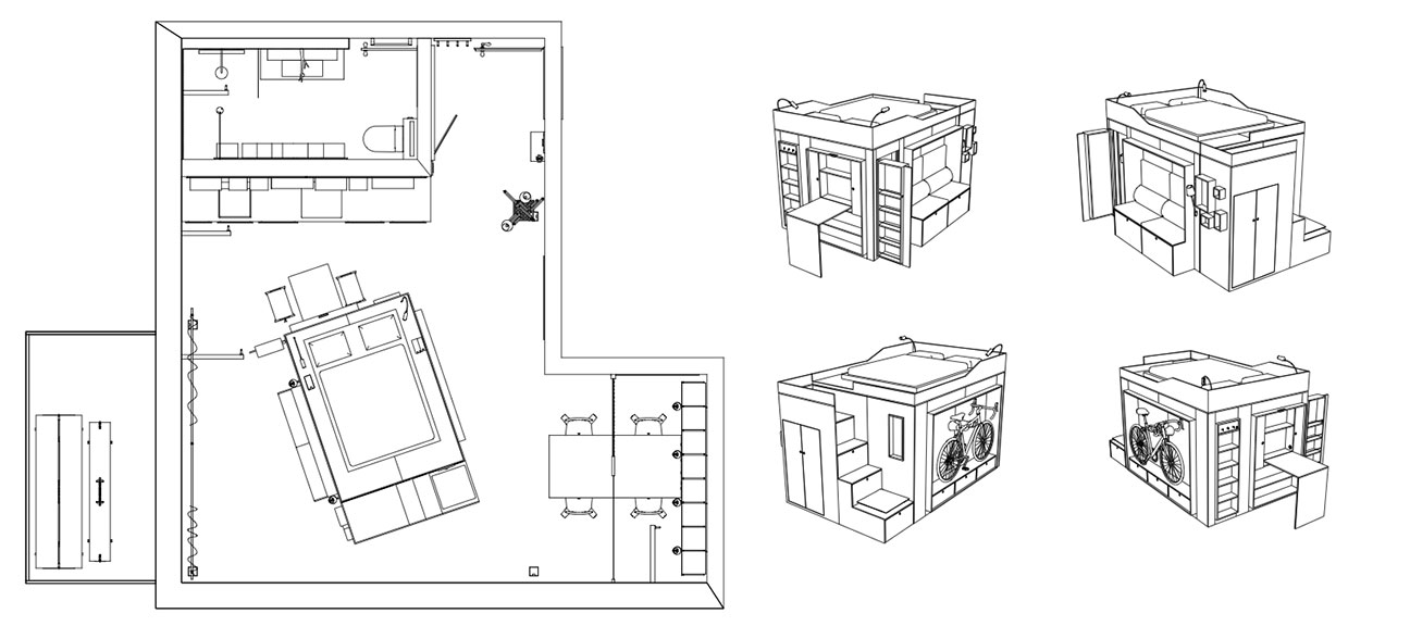 With tiny-home living and micro-apartments still trending, both established and fledgling product designers have been exploring how best to furnish these tight environments. Several months ago, for instance, Yves Béhar launched his moving multifunctional wall system Ori. Now there’s a new concept that, instead of a moving and transforming wall, proposes a self-contained system akin to a loft bed.