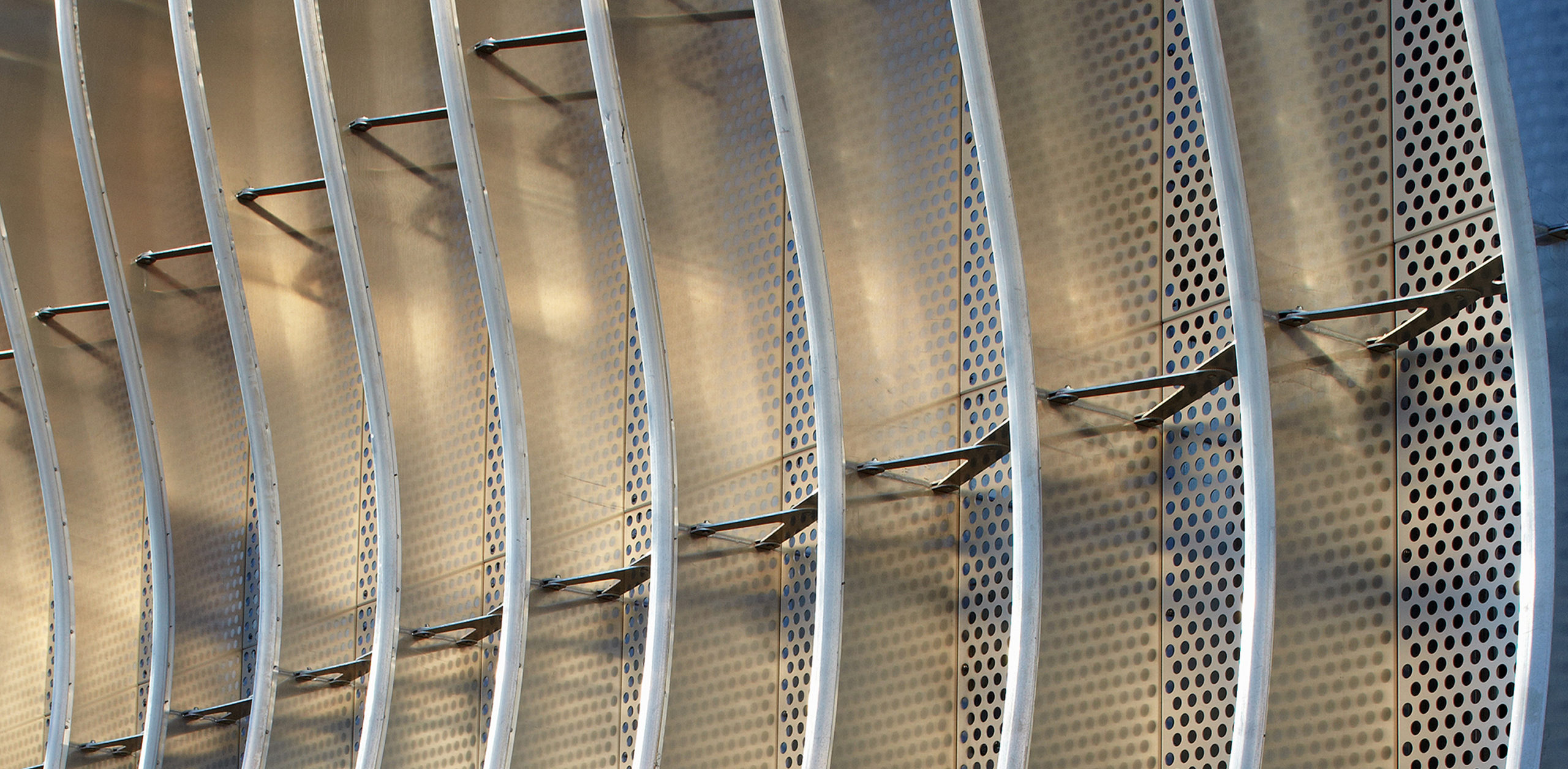 Zahner provided engineering, fabrication, and installation of the curving glass façade in addition to the various architectural metal surfaces. Locked into place by over 2,000 quills of varying heights, almost every single lite of glass is unique; the lites vary in width and height as specified by Zahner engineering and programming specialists.