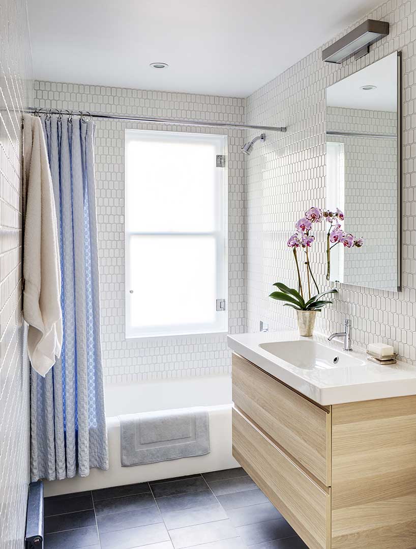 On the second floor we created a master suite including a study that opens onto a roof deck on top of the extension. The third floor is kids’ suite with a shared bath. The garden level houses a family room, large mudroom area, and an au pair’s suite. The backyard garden is framed on four sides by wood fencing that continues along the lower facade of the building..