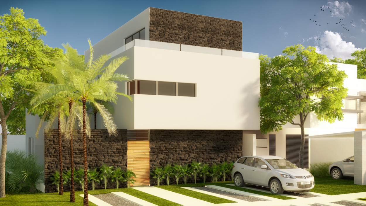 The house MP28 is located in a private residential area in Cancun, Mexico, and is developed on a unique corner terrain, in connection with a donation area, which offers a green area and multiple types of plants and feel of open space.